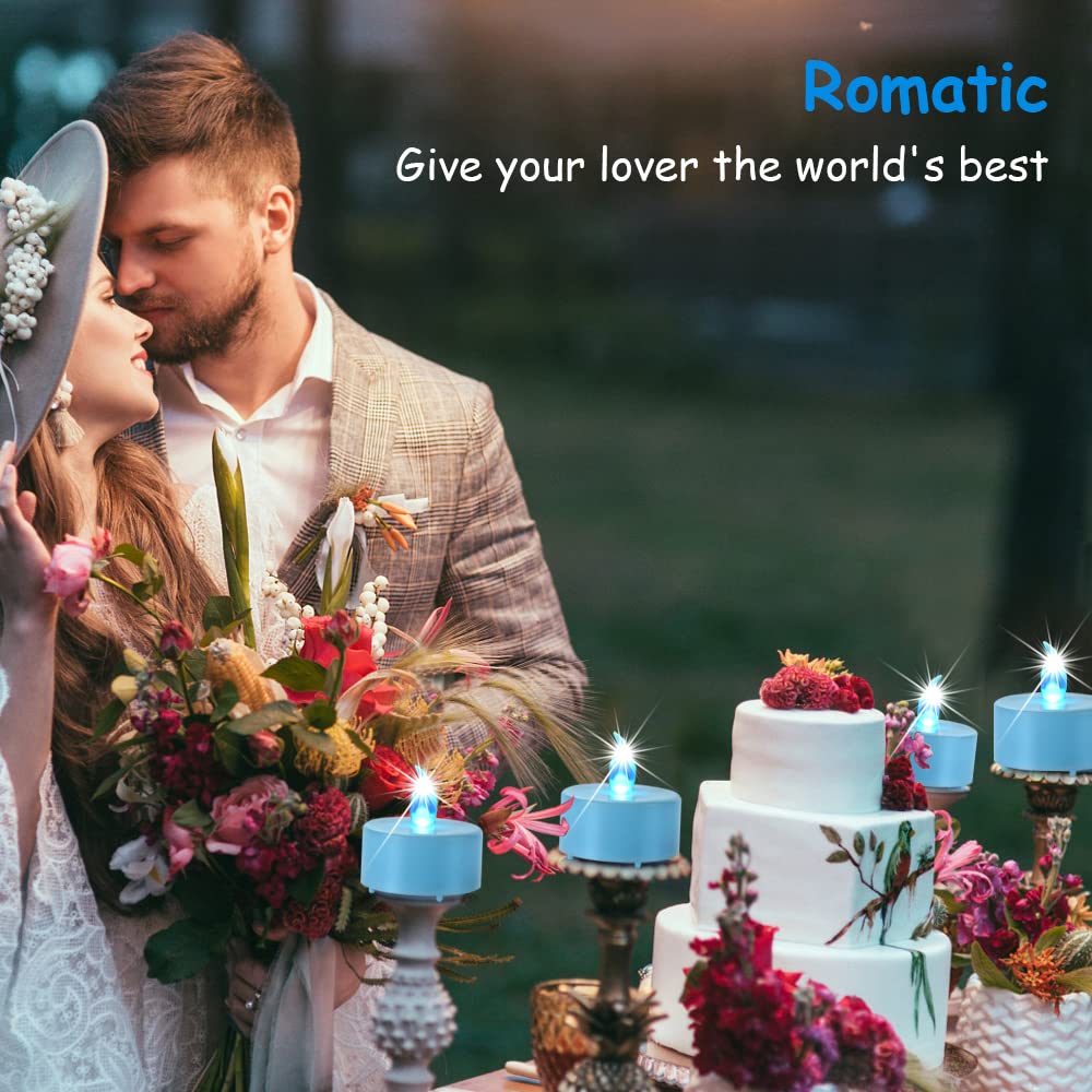 Q: What occasions are these blue tea lights suitable for?A: These blue LED flickering tea lights are ideal for various occasions including Valentine's Day, Christmas, Halloween, Diwali, and can also be used for parties, outdoor events, and as gifts.