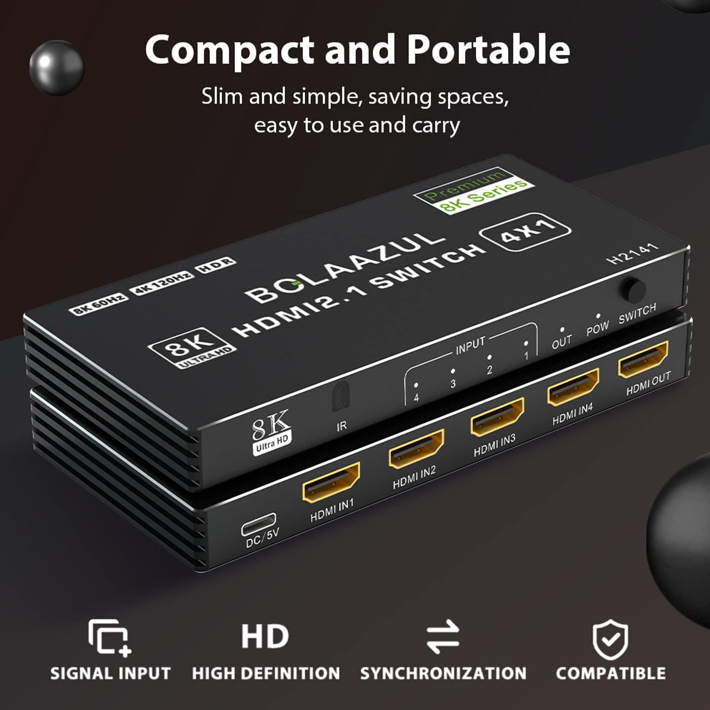 Bolaazul Hdmi 2.1 Switch, 4K@120Hz 8K@60Hz 2K@144Hz 4 Port With Remote, Compatible With Xbox Series X, Ps5, Switcher Selector Bo