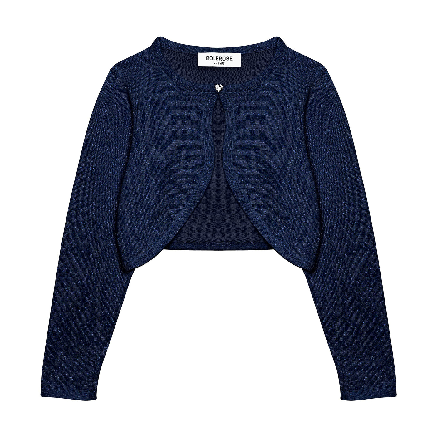 Q: What age range is the BOLEROSE Girls Long Sleeve Sparkle Cardigan suitable for?A: The BOLEROSE Girls Long Sleeve Sparkle Cardigan is designed for children aged 7-8 years, but it is also available in various sizes for younger children, including 3-4, 5-6, 9-10, 11-12, and 13-14 years.