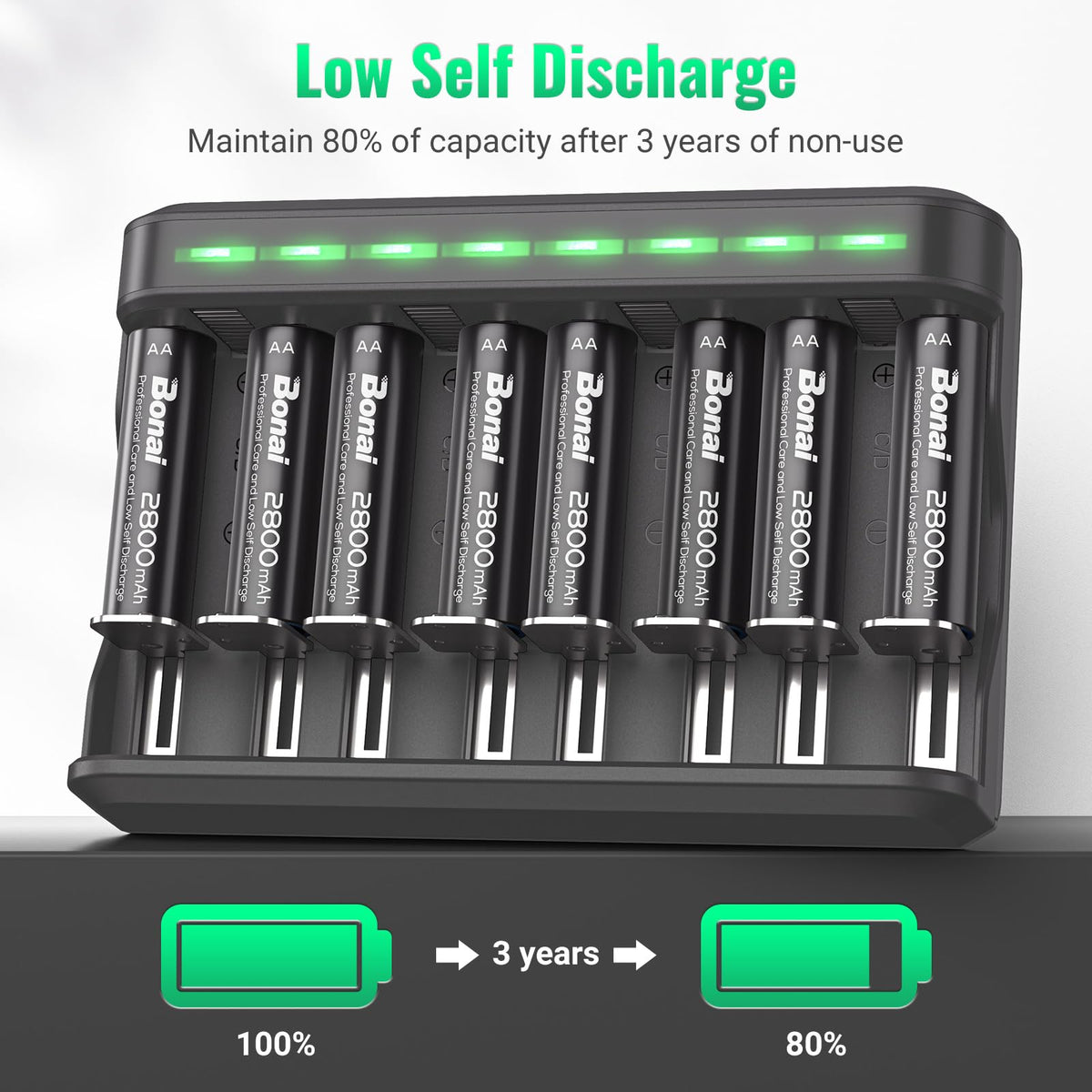 Bonai Aa Rechargeable Batteries 2800Mah 8Pack With Smart Charger For Aa Aaa C D Nimh Battery