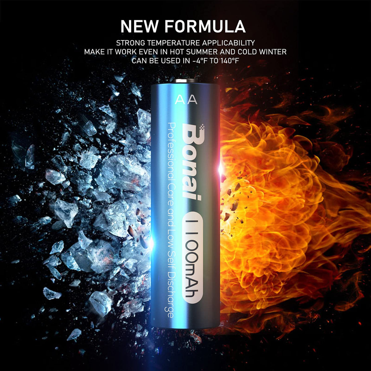 Bonai Aa Rechargeable Batteries, High Capacity 1100Mah Nimh Battery For Outdoor Solar Lights 1.2V Pre Charged Double-A Batteries
