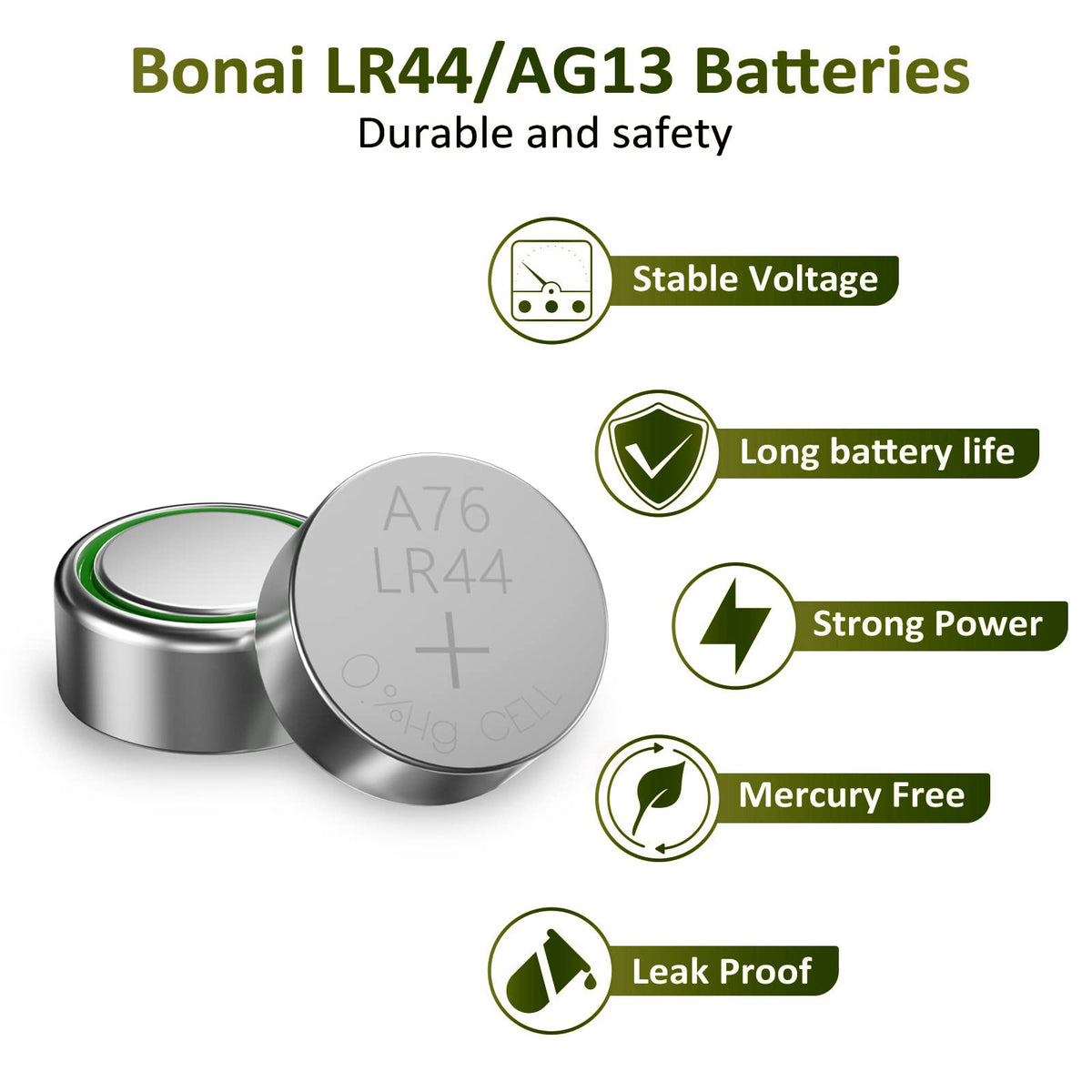 Basic Informationlr44 Battery Packaging Upgrade, More Convenient Storage And Use Chemistry: Alkaline(Non-Rechargeable) Voltage:15V Shelf Life: 3 Years Eak-Proof And Mercury-Freethe Lr44 Button Battery Used Unique Sealing Technology, Which Can Prevent Leakage And Maintain Excellent Performance In Different Temperatures Zero Mercury Design Is Harmless To Humans And The Environment Widely Usethe Inner High Energy Density Enables The Lr44 Battery To Power Up Various Devices Consistently Well, Batteries Lr44 Are Ideal For Small Electronics,Led Flashlight, Calculator, Calipers, Remote Control, Laser Pointer, Toys, Childrens Book, Light String, Ornaments Ultiple Namer44 Battery Also Known As Cr44, Sr44, 357, Sr44W, Ag13, G13, A76,1166A, Lr44H, V13Ga, Gp76A, L1154, Rw82B, Gpa76, Epx76, Px76, Px76A, Sr44Sw, S357,303, Sp303, Sr44Sw, L1154C, Gp76, 1131So, D303, 357, Lr 44B, V357, V303 Feel Free To Buy It If Your Devices Need The Battery Mentioned Above What You Getyou Would Get 50 Counts Cost-Effective Lr44 Button Cell Battery, 1 Year Warranty Of Refund And Replacement Any Questions, Please Tell Us Via Email, We Will Reply To You Within 24 Hours