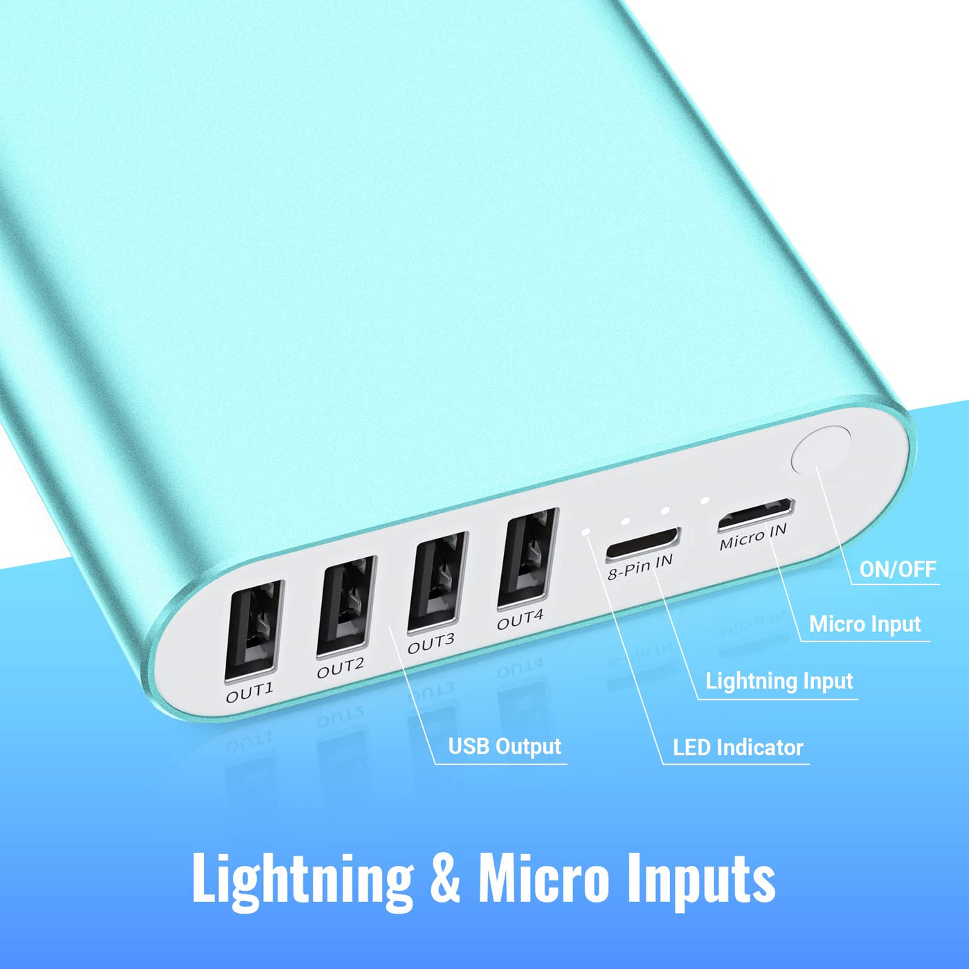 Portable Charger Bonai 20000Mah Power Bank 4 Usb Output & Dual Input, Aluminum Polymer External Battery Pack For Road Trip Camping Compatible With Iphone Ipad Smartphone Tablet Etc. - Mint