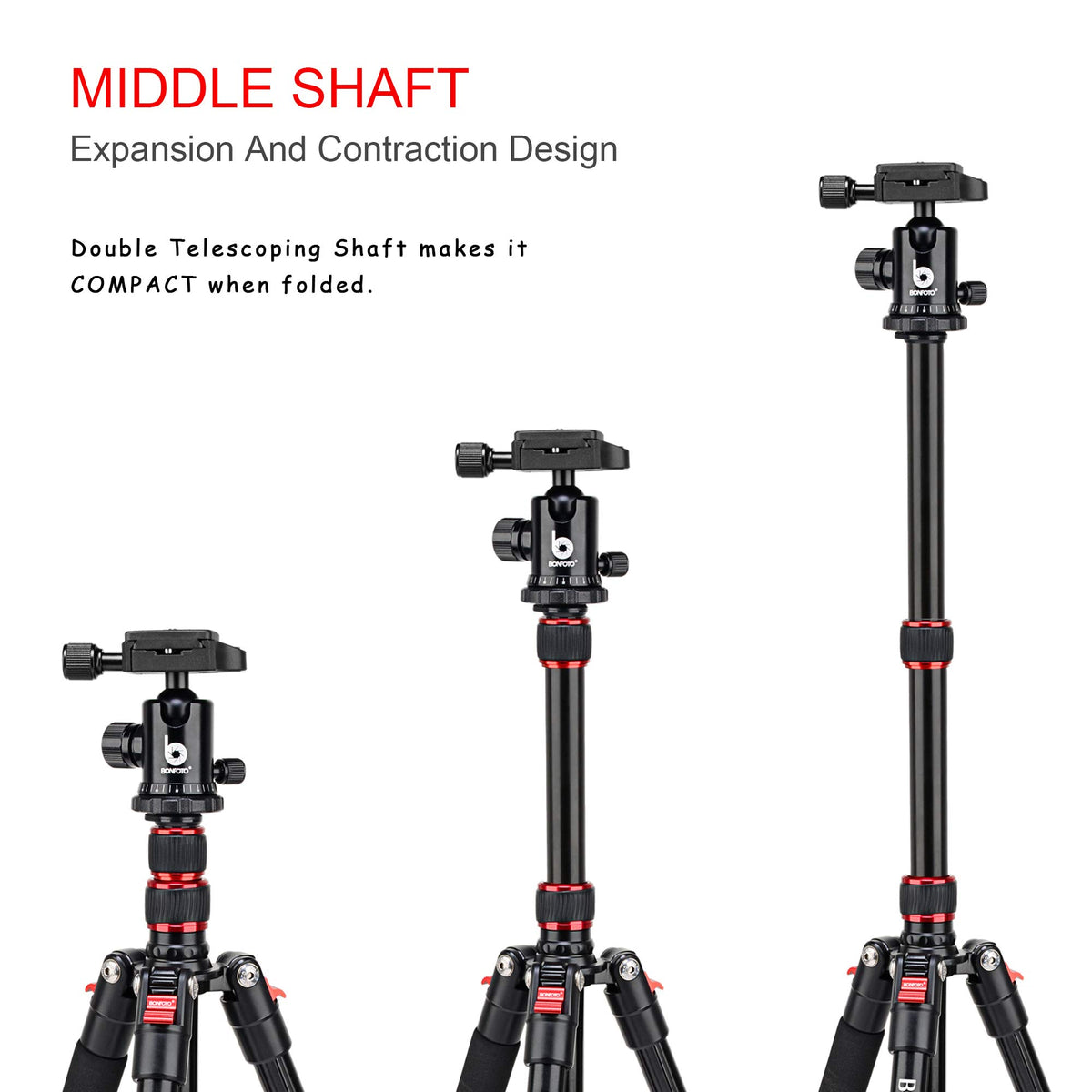 Bonfoto B690A Camera Tripod For Travel,Lightweight Aluminum Portable Dslr Tripod With 360 Degree Ball Head And Carry Bag, Camera Stand For Ring Light & Canon Nikon Sony Dslr