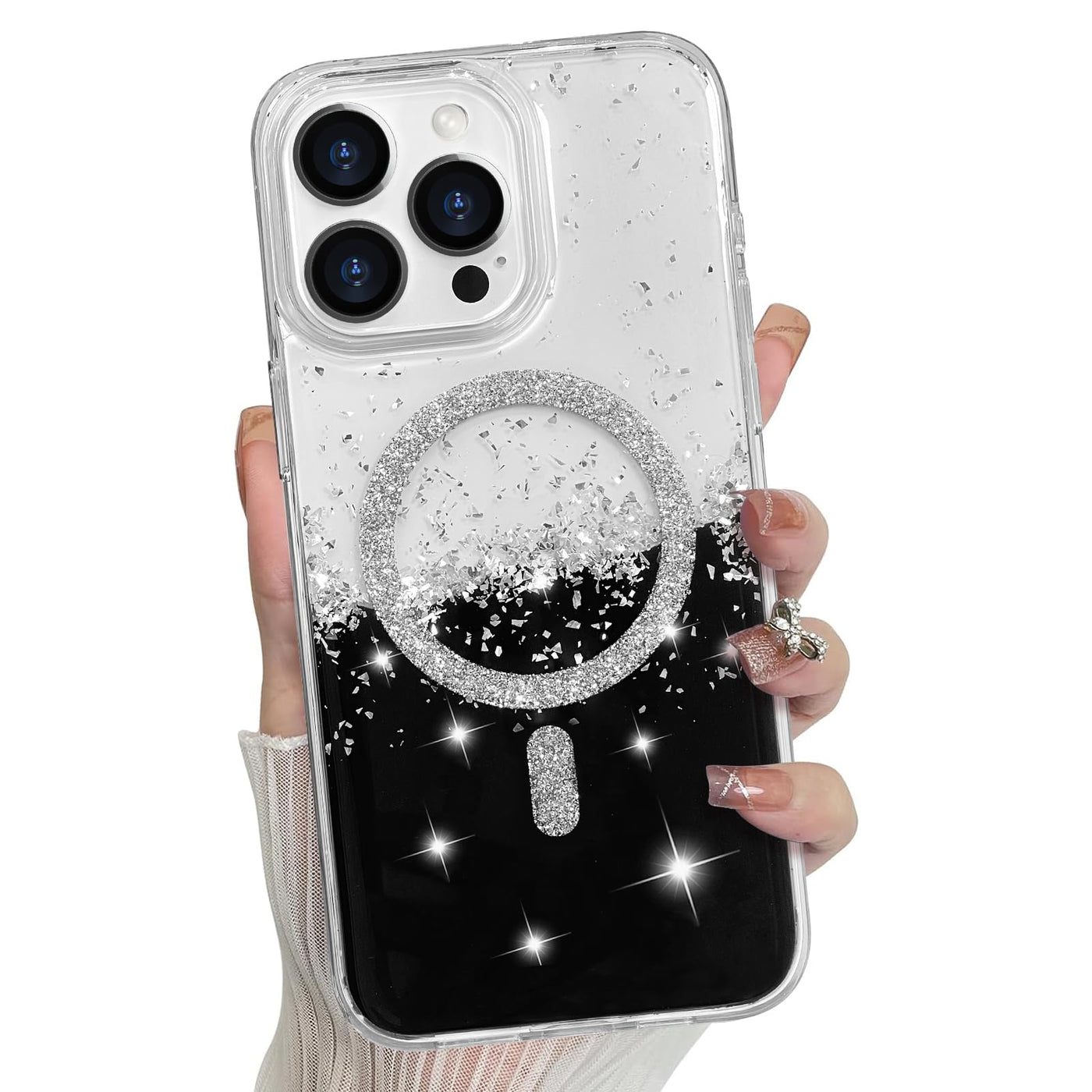 Bonoma For Iphone 16 Pro Case, Sparkly Glitter Bling Back, Magnetic Support For Magsafe Shockproof Case, Crystal And Clear High