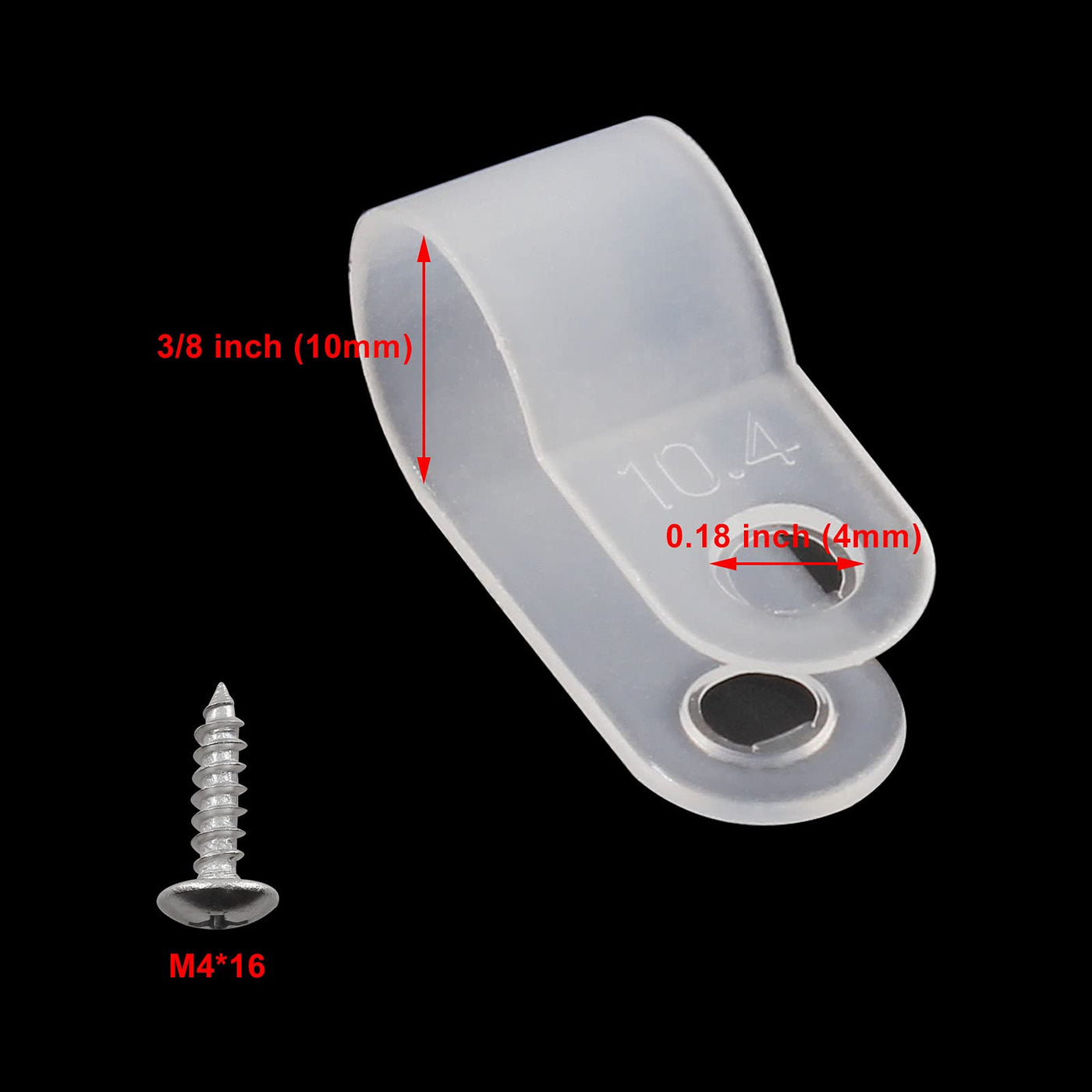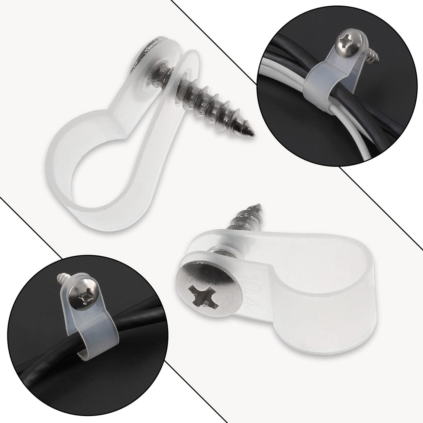 Q: What size are the clips and screws included in the package?A: Each clip is designed for a 3/8 inch wire, and the package includes M4x16 screws for installation.