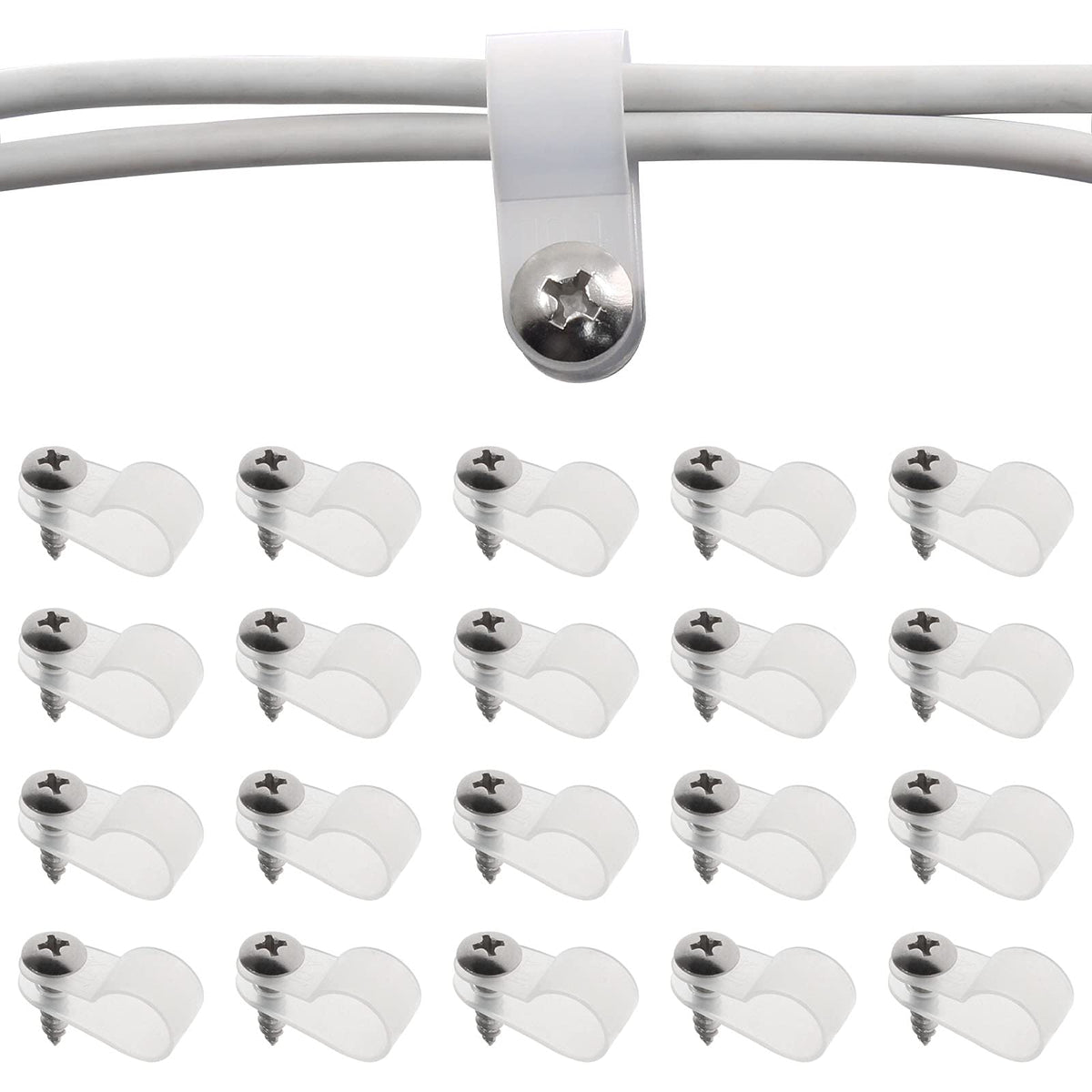 Bonsicoky 50Pcs 3/8 Inch Rope Light P Style Clips With Screws, Cable Clip Wire Clamp Cable Organizer Cord Holder For Wire Manage