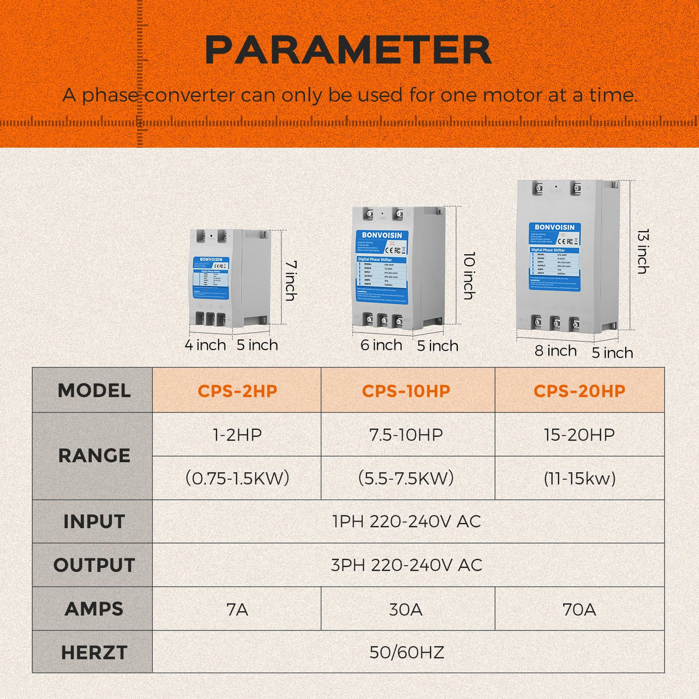 Bonvoisin Single Phase To 3 Phase Converter Is Designed To Perfectly Convert Power For Your 220-240V Motor Equipment, Providing Reliable And Accurate Three-Phase Power Supply