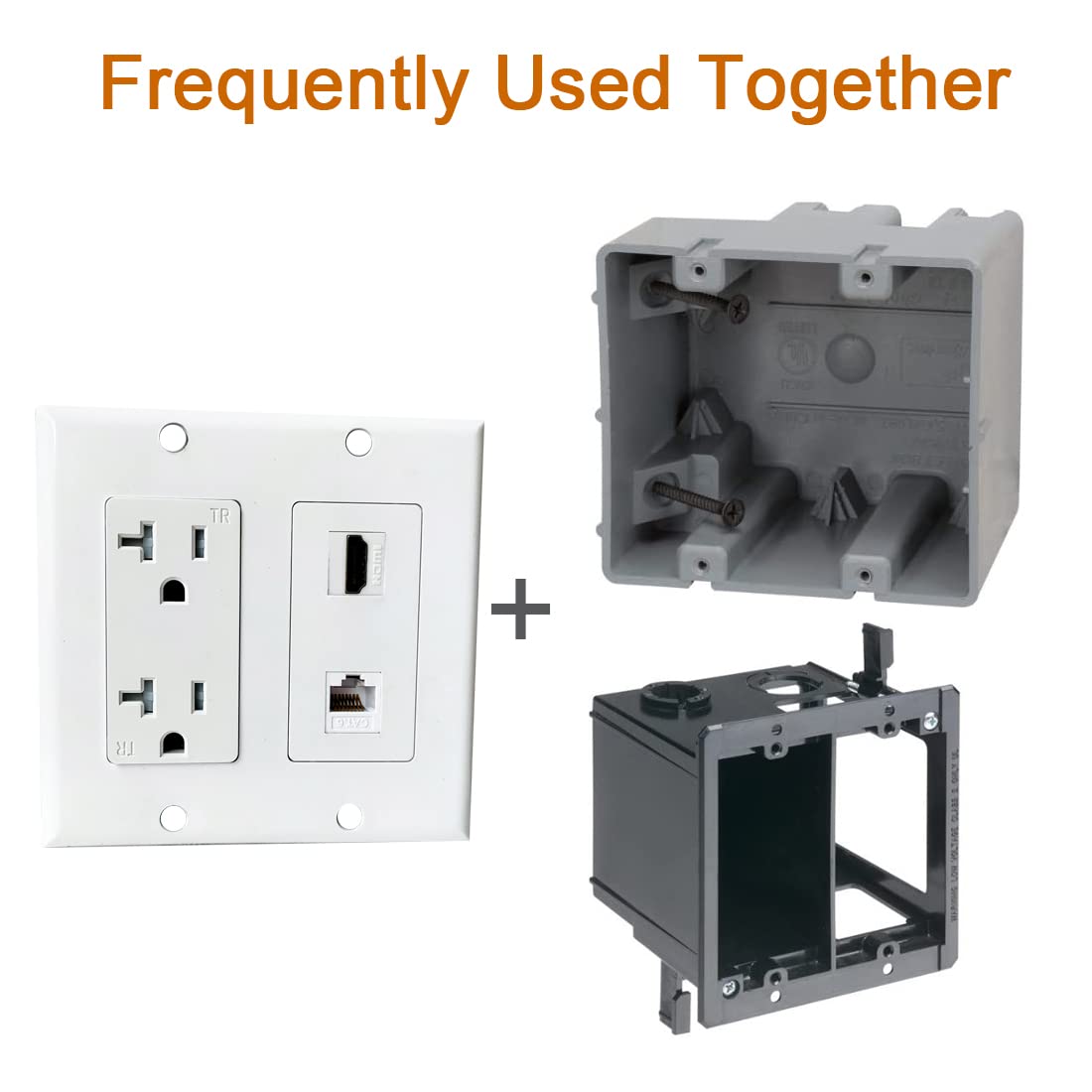 Boplat 20Amp Power Outlet With Ethernet Hdmi Port Wall Plate Electrical Outlet With 1 Port Hdmi, 1 Cat6 Rj45 Cover Plate Whi