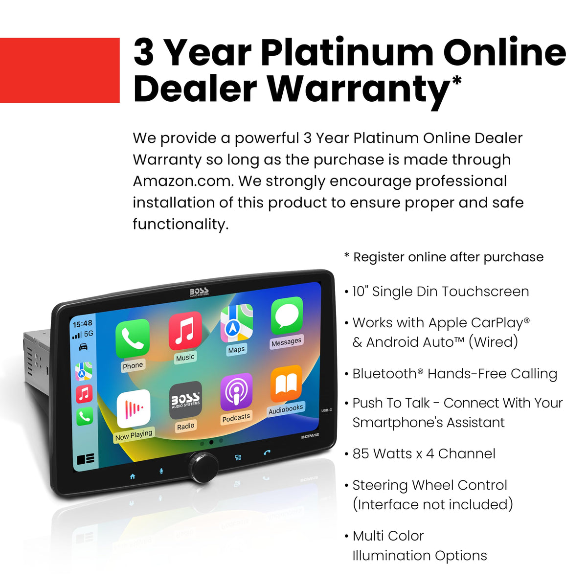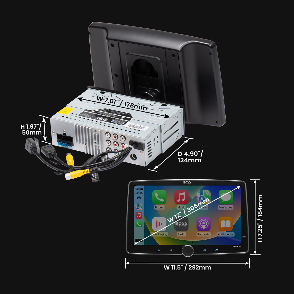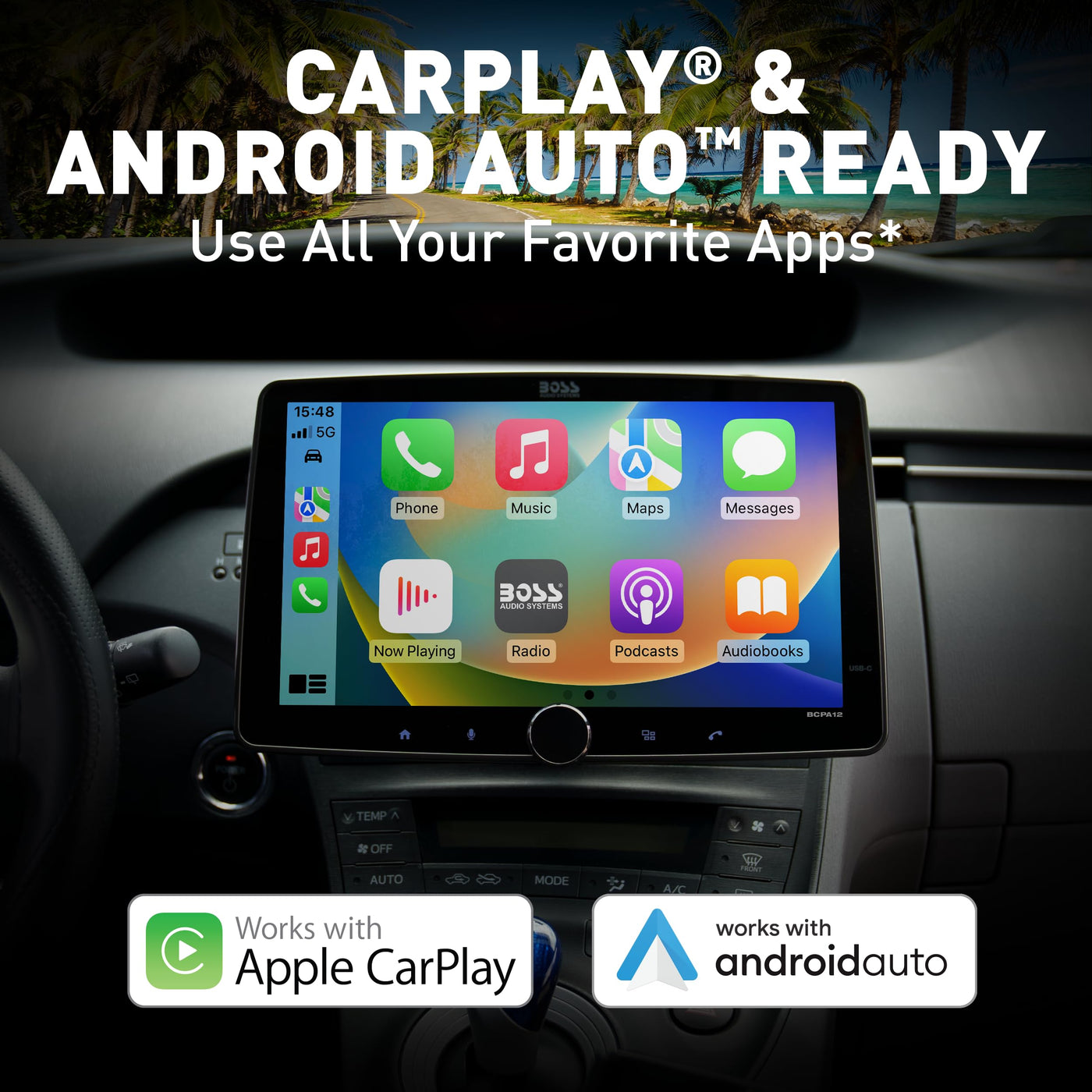 Boss Audio Systems Bcpa12 Single Din Car Stereo - Apple Carplay, Android Auto, 12 Inch Touchscreen, Bluetooth, No Dvd Cd Player, Radio Receiver