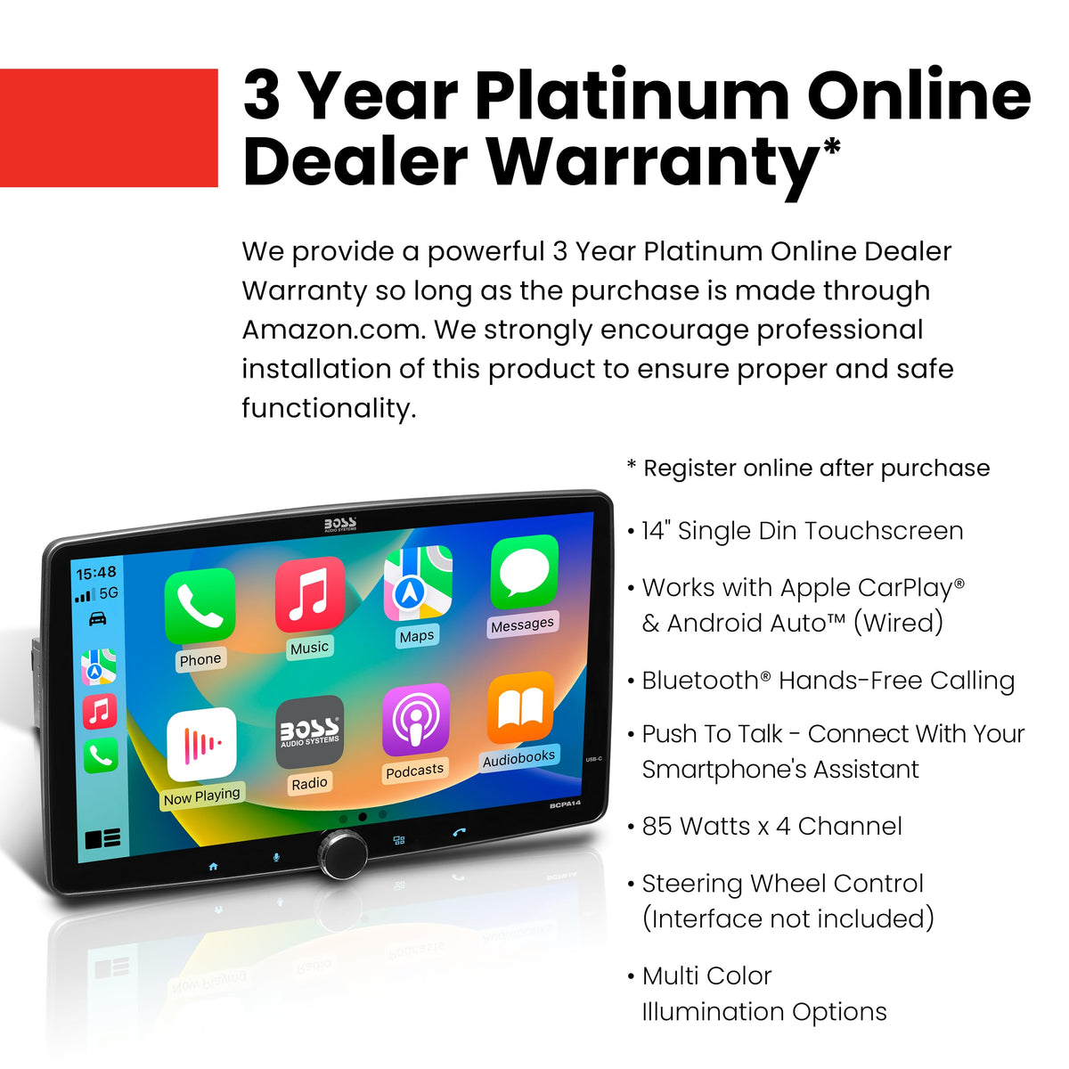 Boss Audio Systems Bcpa14 Car Stereo - Apple Carplay, Android Auto, Single Din, 14 Inch Capacitive Lcd Touchscreen, Bluetooth, N