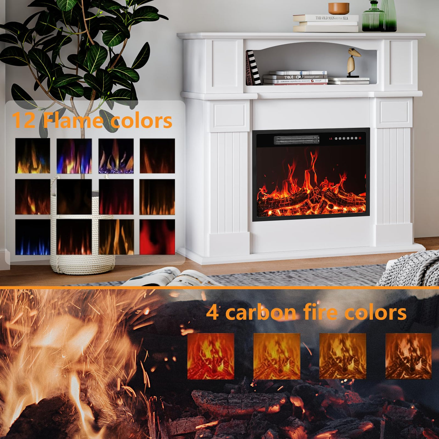 Important Notice: 23'' Electric Fireplace And Mantel Will Be Shippped In Two Separate Packages. | Stylish Design Wood Mantel: Made Of Thick, High-Density Faux Wood With A Double Varnish Process, Our Mantels Are Sturdy And Elegant For Your Home Decor. Mantel Dimension:43.3''W * 42.5''H * 13.5''D, Electric Fireplace Insert Dimension: 5.24''D X 23''W X 17.7''H | Realistic Flame Effect: This Fireplace Can Be Used With Or Without Heat And Features 3D Realistic Flame Effects, Which Is The Perfect Addition To Your Living Room Or Dining Area. 12 Flame Colors Includes The Upgraded 3 Classic Flame Colors (Red Orange And Blue),5 Flame Speeds, 5 Flame Brightness And 4 Carbon Fire Colors Option. The Magnificent Effect Can Be Operated With Or Without Heat, Giving Your Room A Dreamlike Ambiance | Safety Is The Premise Of Everything: Our Electric Fireplace Has Gained A Certification From Csa And The Plug Of Electric Fireplace Has Gotten Laboratory Accreditation From Ul,In Addition,The Patent Pending Safety Thermal Cut-Off Device Prevention Technology Will Prevent Damage By Automatically Shutting Off The Heater When The Heater Is Obstructed Or Overheated | Multiple Functions: Remote Control And Touch Screen Provide You Much Convenience To Control The Electric Fireplace. Choose 750W/1500W Heat Options For Different Rooms And Weather For Energy Saving Purpose. Set The Time From 1 Hour To 8 Hours By Its Timer Control System As You Want.The Heating Area Is Up To 400 Square Feet. The Heat Fireplace Will Not Make The Air Too Dry | Customer Service: Let Bossin Electric Fireplace Warm And Decorate Your Home And Life