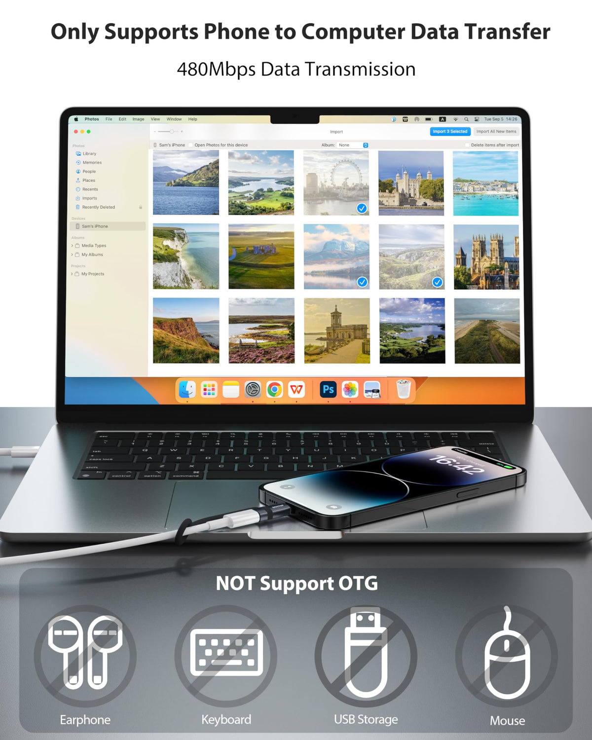 36W Usb C To Lightning Cable Adapter, Support Data Sync/Pd Fast Charging Compatible With Iphone Ipad Airpods, With Anti-Lost Holder -2 Pack