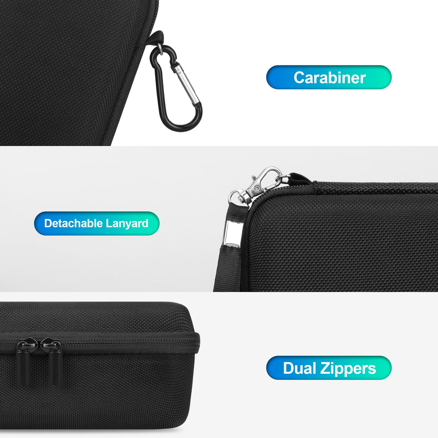 Q: How does the unique design of this case enhance portability?A: The case features two smooth zippers for easy access and two elastic bands that securely hold the Garmin Xero C1 Pro in place, preventing movement while traveling. Additionally, it includes a comfortable removable lanyard, making it easy to carry or fit into a backpack.