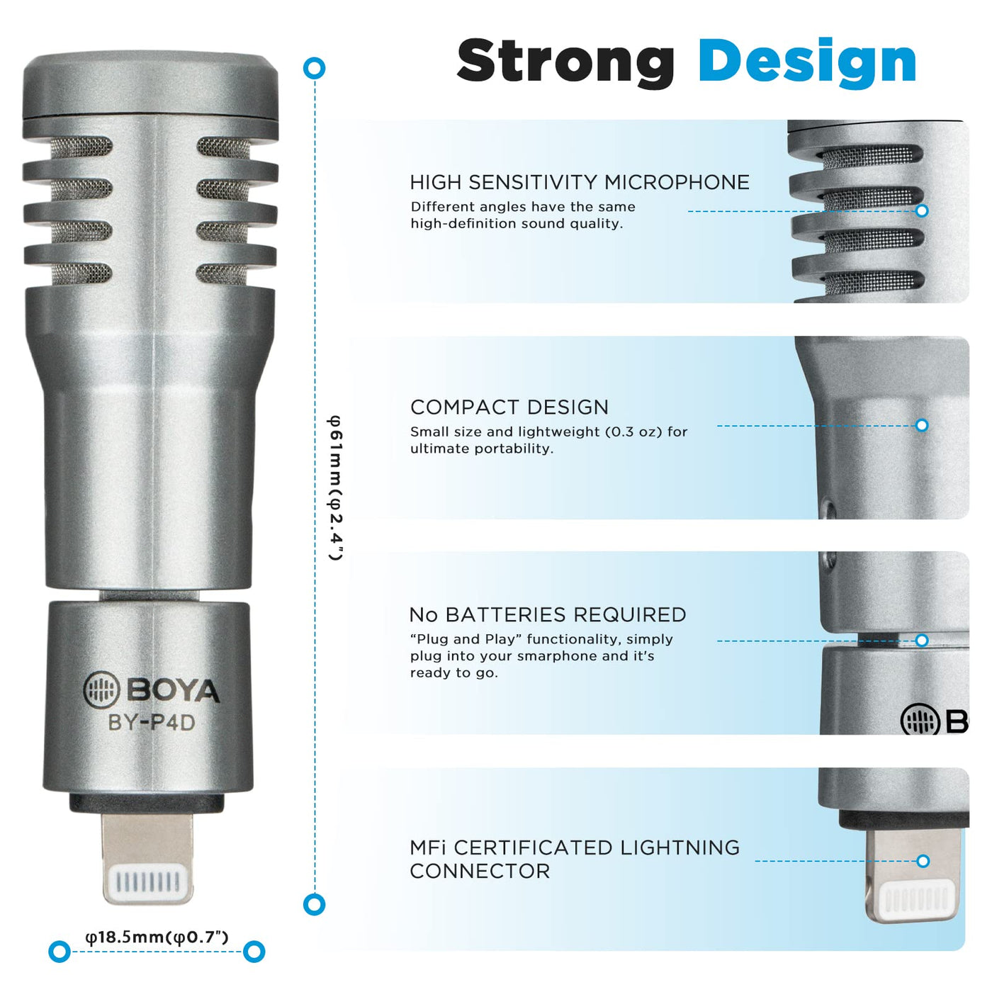 Boya By P4D Iphone Microphone Ios Mini Phone Mic With Lightning Port For Iphone/Ipad/Ipod Foldable External Microphone With Wind