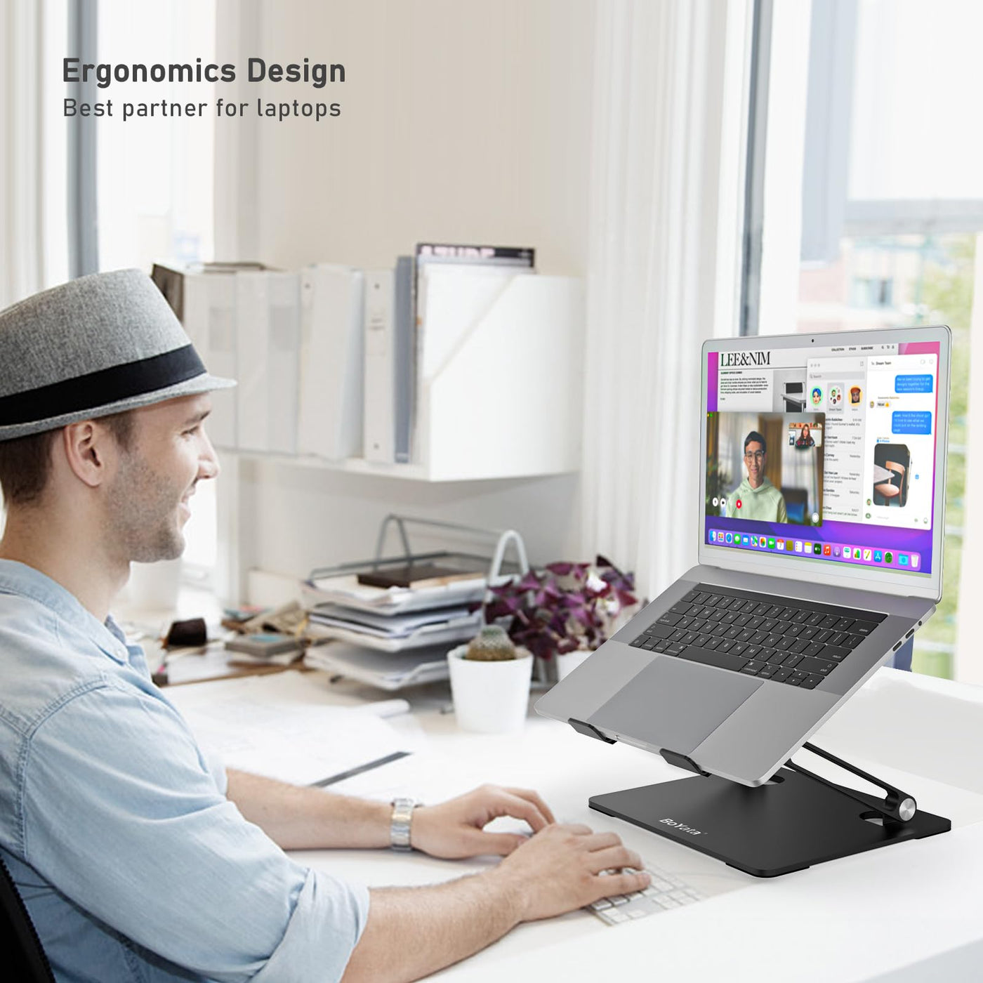Boyata Laptop Stand, Adjustable Laptop Riser With Slide-Proof Silicone And Protective Hooks, Laptop Stand For Laptop Up To 17 Inches, Laptop Holder Compatible For Macbook, Laptop-Black