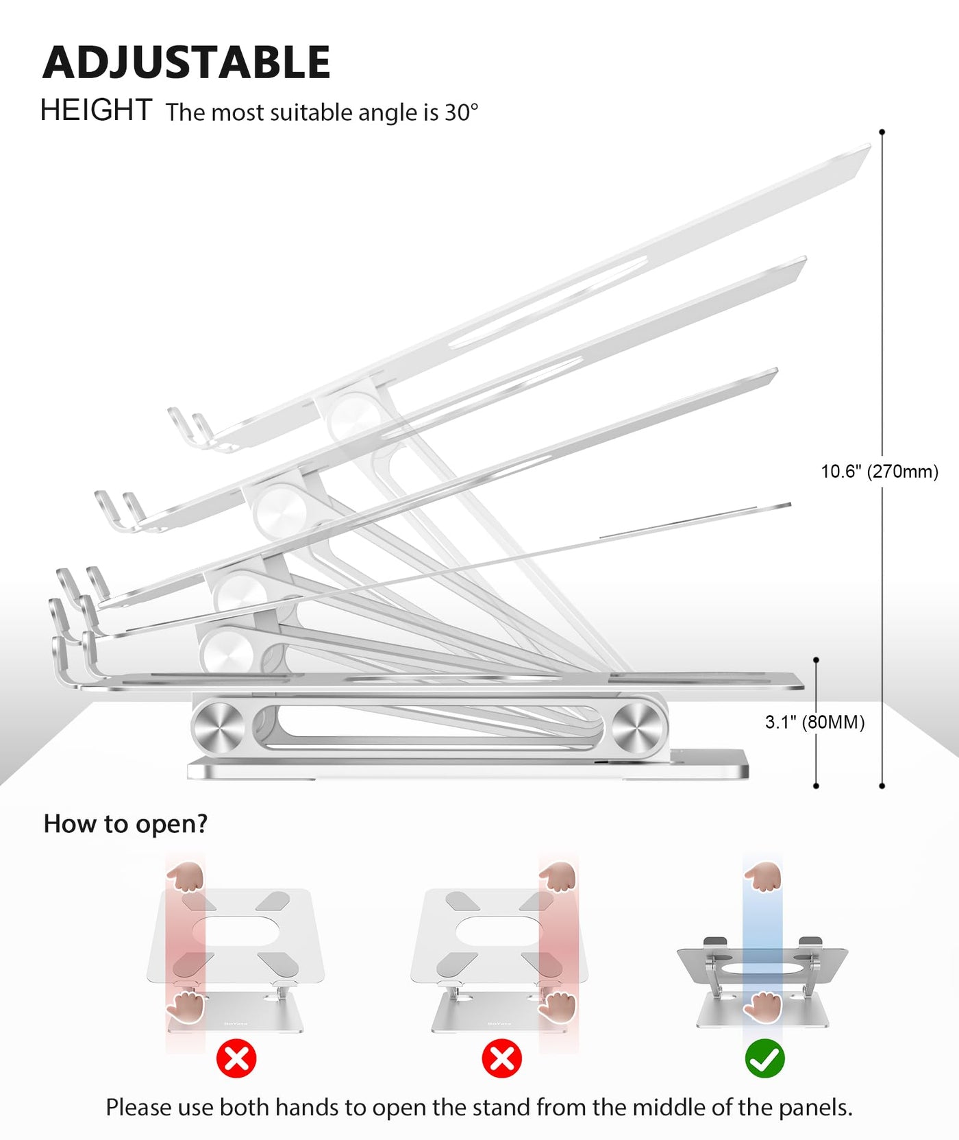 Boyata Laptop Stand, Laptop Holder, Multi Angle Stand With Heat Vent, Adjustable Notebook Stand For Laptop Up To 17 Inches (Silver 2)