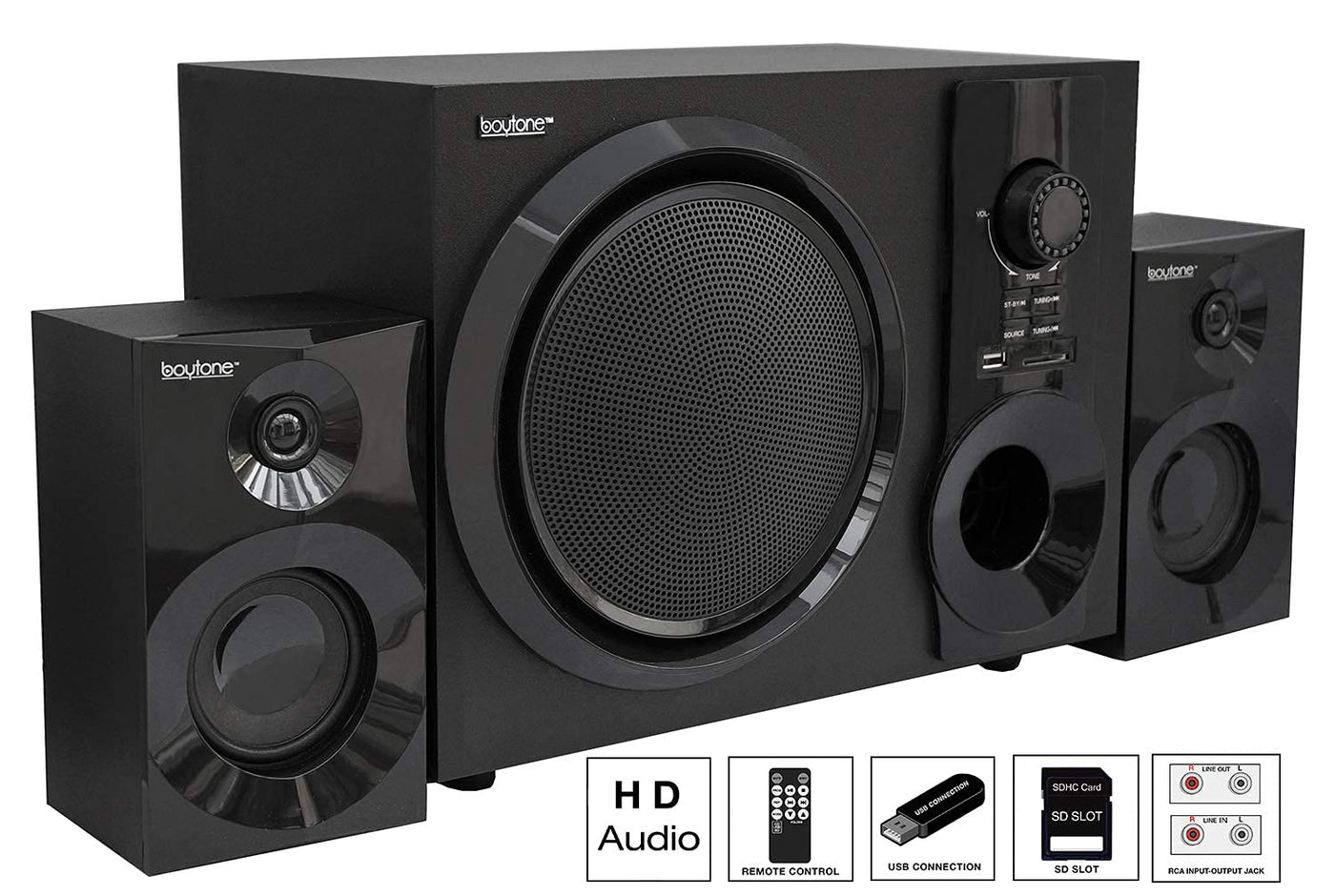 Boytone Bt-225Fb Comes With New Bluetooth Technology Which Supports Wireless Music Streaming. The Main Unit Connects With Wire Or You Can Also Wirelessly Connect A Smartphone/Tablet/Pc Via Bluetooth. System Comes With 2 Separate Speakers Connected With Wire To The Main Unit. Fm Radio, Powered By Ac Wall Outlet (Ul) Listed, Aux Cable Included. Frequency Range: 120Hz-20Khz - Satellite Rated Power: 4'8 Ohm Wired/Wireless Bluetooth Connection To Stream Wireless Music From The Tablets, Smart Phones, Laptops, Ipad, Iphone And More. Volume Controls On The Sub-Woofer, Output Total Power Is 30 Watt With 6 1/2 Inch Sub-Woofer Speaker. Pairs Quickly And Easily With Your Unit. Usb/Sd/Wireless Remote Control With Fm Radio And Digital Display. Listen To Your Music Loud And Clear. Built In Mp3 Player Included, It Could Automatically Play The Music With A Standalone Micro Sd Card. Custom Designed And Engineered By Boytone - An Industry Trusted Brand For Over 33 Years. Part Number: Bt-225Fb - Black Color. 1 Year Warranty Provided By Boytone. For More Information Please Check Manufacturer Website.