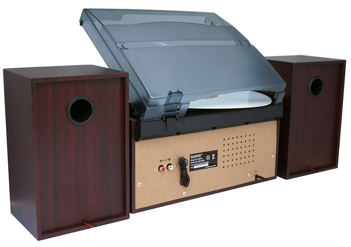 Boytone Bt-28Sps Classic Style With Modern Technology - Bluetooth Wireless Music Streaming Turntable With 2 Separate Stereo Speakers. Record From Vinyl, Radio, And Cassette To Mp3 Format Through Usb Or Sd. Convert Vinyl To Mp3 Format Without A Computer. | Works With Virtually Any Bluetooth Enabled Device - (Iphone, Android, Smartphone, Ipad, Tablet, Pc) Front Load Cd And Cassette Easy To Access. | Ability To Convert Vinyl Records, Cassette, Radio Into Mp3 Files - Save Your Music Onto Usb Flash Or Sd Memory Cards. Large Display Screen | Cd Player, Cassette Recorder And Player, Sd, Usb, Headphone Jack, Rca Line Out, Aux Input Mp3 Cd And Cd-R/Rw Compatible, Skip/Search Forward And Back, Repeat 1/Single Disc, Convert Vinyl To Mp3 Format Without A Computer | Random Play, Programmable Memory, Multi-Function Back-Lit Lcd Display, Direct Usb/Sd Recording From Turntable / Cassette / Cd / Aux In / Am/Fm Radio. 1-Year Warranty From Boytone.
