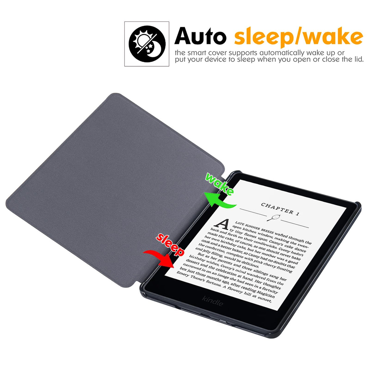 Q: Does the case support the automatic sleep/wake feature?A: Yes, the BOZHUORUI Slim Case supports the automatic sleep/wake feature. It will automatically wake your Kindle Paperwhite when you open the cover and put it to sleep when you close it.