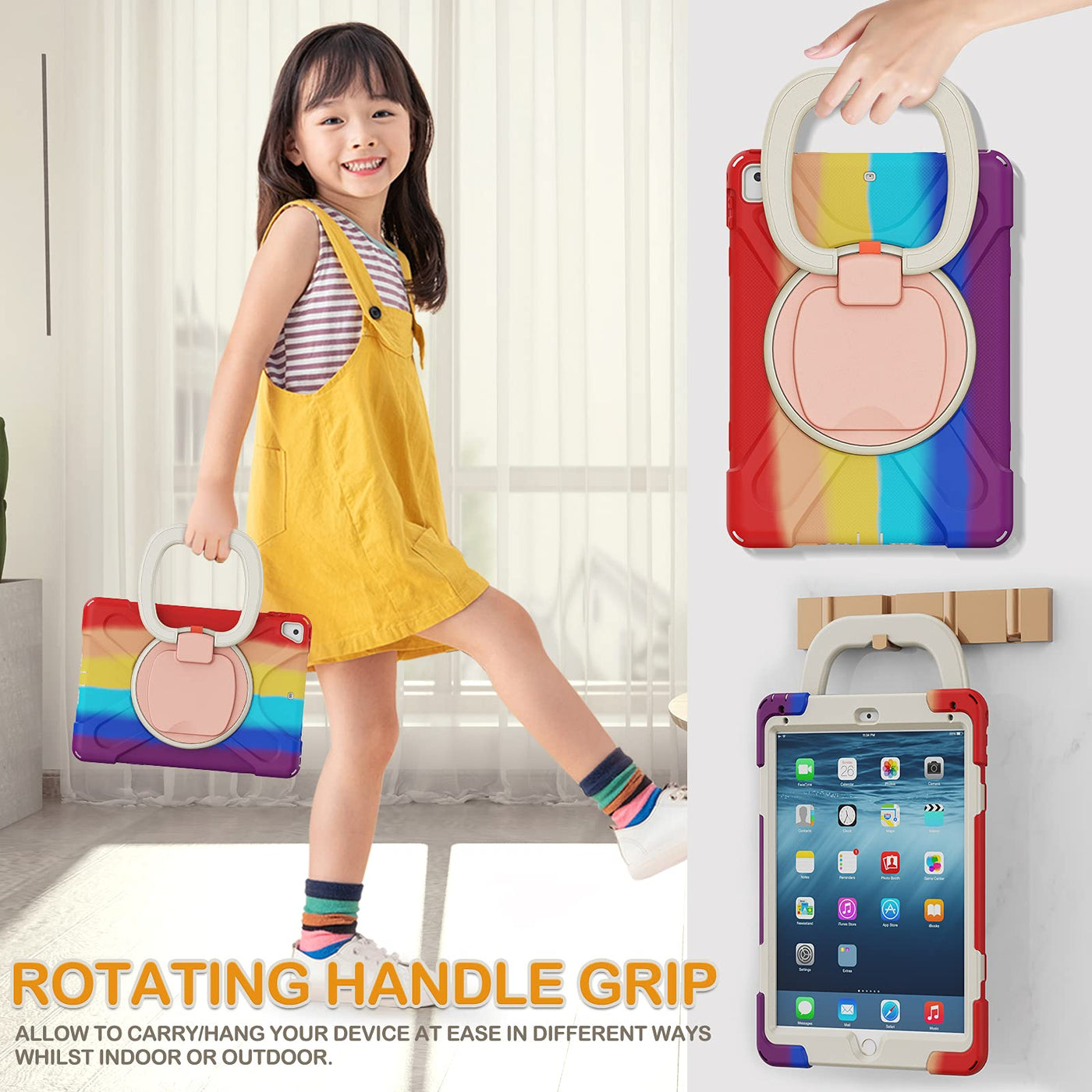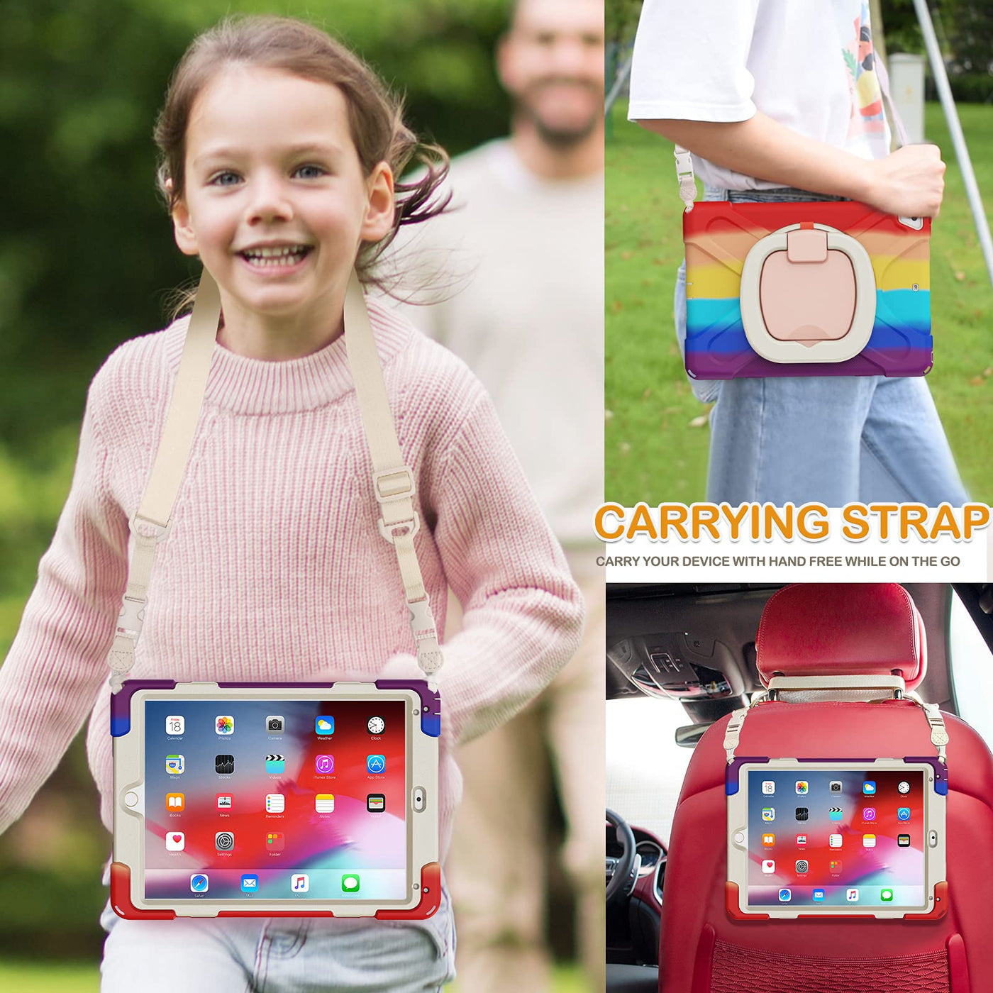 Braecn Case For 9.7 Inch Ipad 5Th/6Th Gen 2018/2017, Drop Protection Silicone Cover W/Pencil Holder, Shoulder Strap, Folding Han