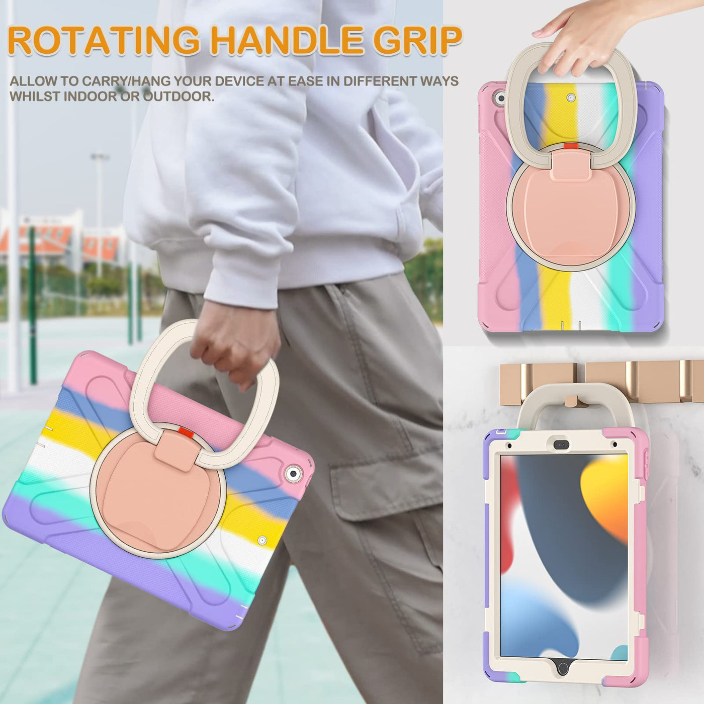 Braecn Case For Ipad 10.2 2021 Ipad 9Th Generation, Shockproof Protective Silicone Cover With Pencil Holder &Rotating Handle