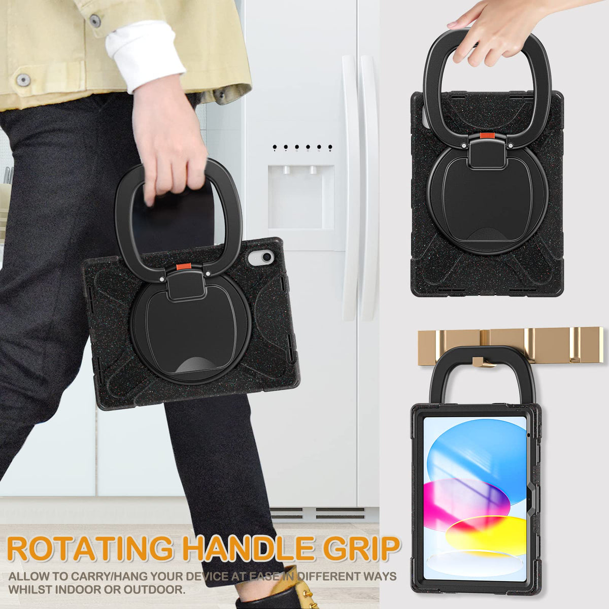 Braecn Case For Ipad 10Th Generation 2022 10.9 A2696 A2757 A2777, Heavy Duty Rugged Silicone Case With Swivel Ring Stand/Kick