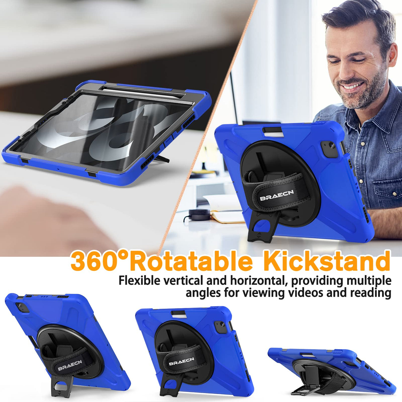 Compatibility:Designed For New Ipad Air 11 Inch 6Th Generation M2 2024/Ipad Air 10.9 Inch 5Th Generation/Ipad Air 10.9 Inch 4Th Generation . Also Fit For Ipad Pro 11 Inch 4Th/3Rd/2Nd/1St Generation 2022/2021/2020/2018 (Model: A2902/A2903/A2904/A2589/A2591A2072/A2316/A2324 /A2325/A2435/A2759/A1980/A2013/A1934/A1979), Not Compatible With Other Ipad Models. Apple Pencil And Screen Protector Not Included | Materials: Three Layer Structure Design Provides A Full Around Protection Against Scratch,Impacts And Shock During Daily Use. Built-In Apple Pencil Holder Offer A Safe Way To Store Your Ipad Pencil While Using Our Case, Apple Pencil Charging And Pairing Are Supported. | 360