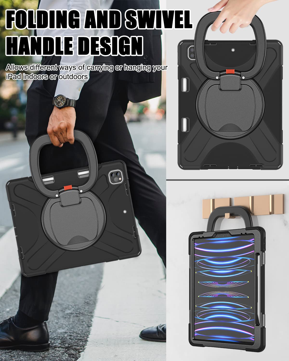 Braecn For Ipad Air 13 Inch Case M2 (2024), Rugged Ipad Pro 12.9 6Th/5Th/4Th/3Rd Generation Case With Kickstand/Swivel Handle Gr