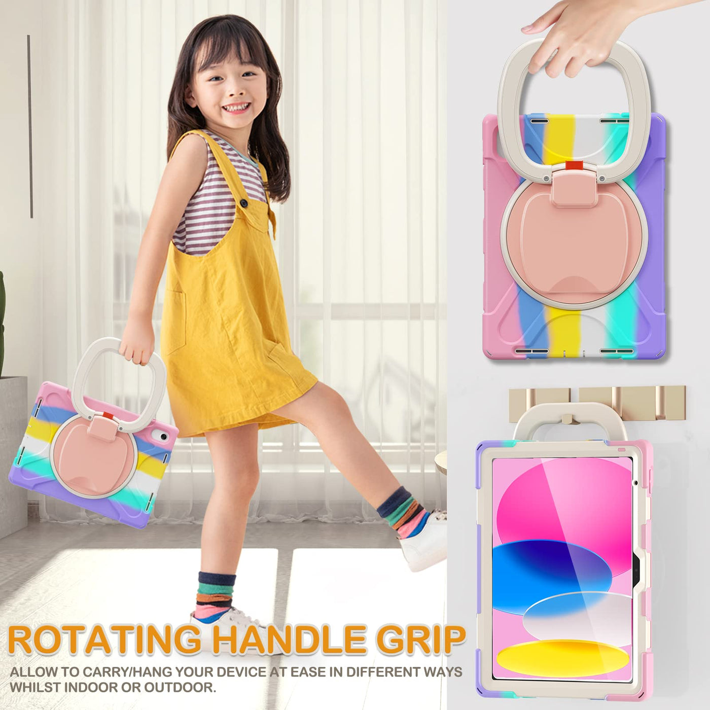 Braecn Kids Case For Ipad 10Th Generation 2022 10.9 A2696 A2757 A2777, Heavy Duty Rugged Silicone Case W/Swivel Ring Stand/Stabl