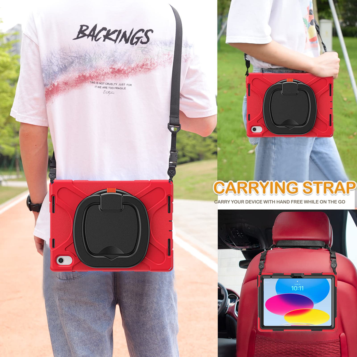 Braecn Kids Case For Ipad 10Th Generation 2022 10.9 Inch A2696 A2757 A2777, Heavy Duty Rugged Silicone Cover W/Swivel Ring Stand