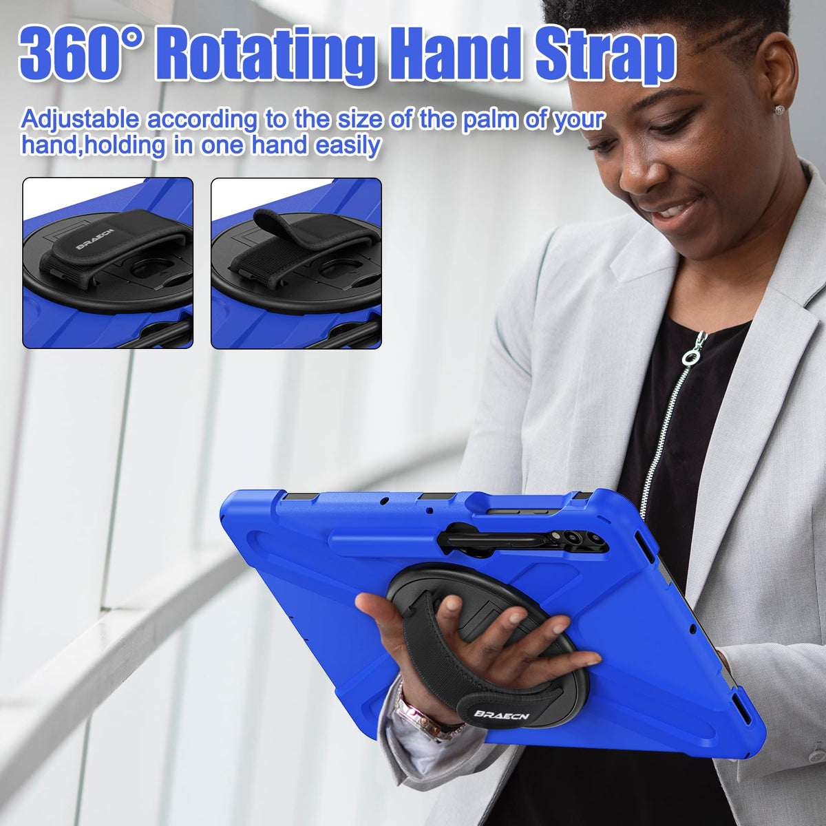Braecnstock For Samsung Galaxy Tab S9 Fe+ Plus 2023/ S9+ Plus 2023/ S8+ Plus 2022/ S7 Fe 2021/ S7+ Plus 2020 5G Case 12.4 Inch With 360 Rotating Hand Strap + Stand, Shoulder Strap, Pencil Holder Shockproof Rugged Heavy Duty Protection Suitable For Any People (Men Women Kids Girls Old Man ) Suitable For Any Scene (Trave, Working, Meeting, Warehouse, Car, In School Or Outdoors )