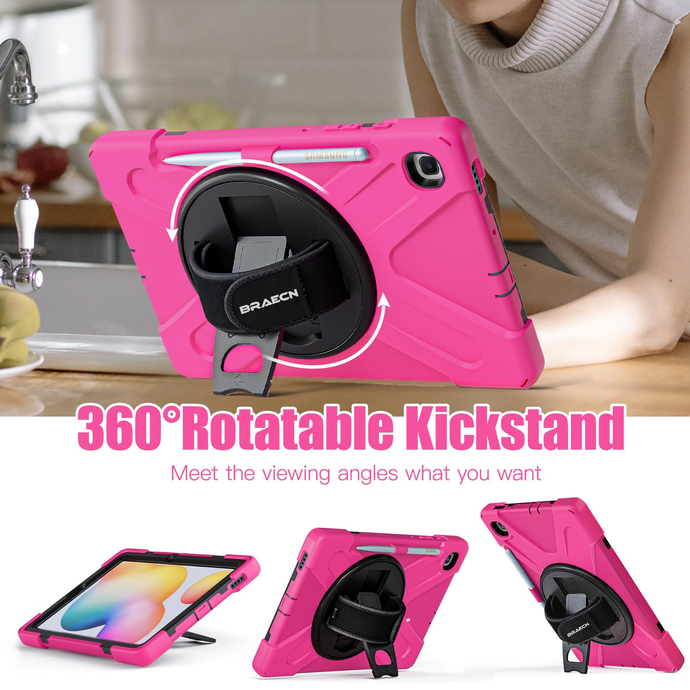 Braecnstock Samsung Galaxy Tab S6 Lite Case 10.4 Inch 2024/ 2022/ 2020 (Sm-P620/ P625/ P613/ P610/ P615/ P617/ P619) With 360 Rotating Hand Strap + Stand, Shoulder Strap, Pencil Holder Shockproof Rugged Heavy Duty Protection Suitable For Any People (Men Women Kids Girls Old Man ) Suitable For Any Scene (Trave, Working, Meeting, Warehouse, Car, In School Or Outdoors )