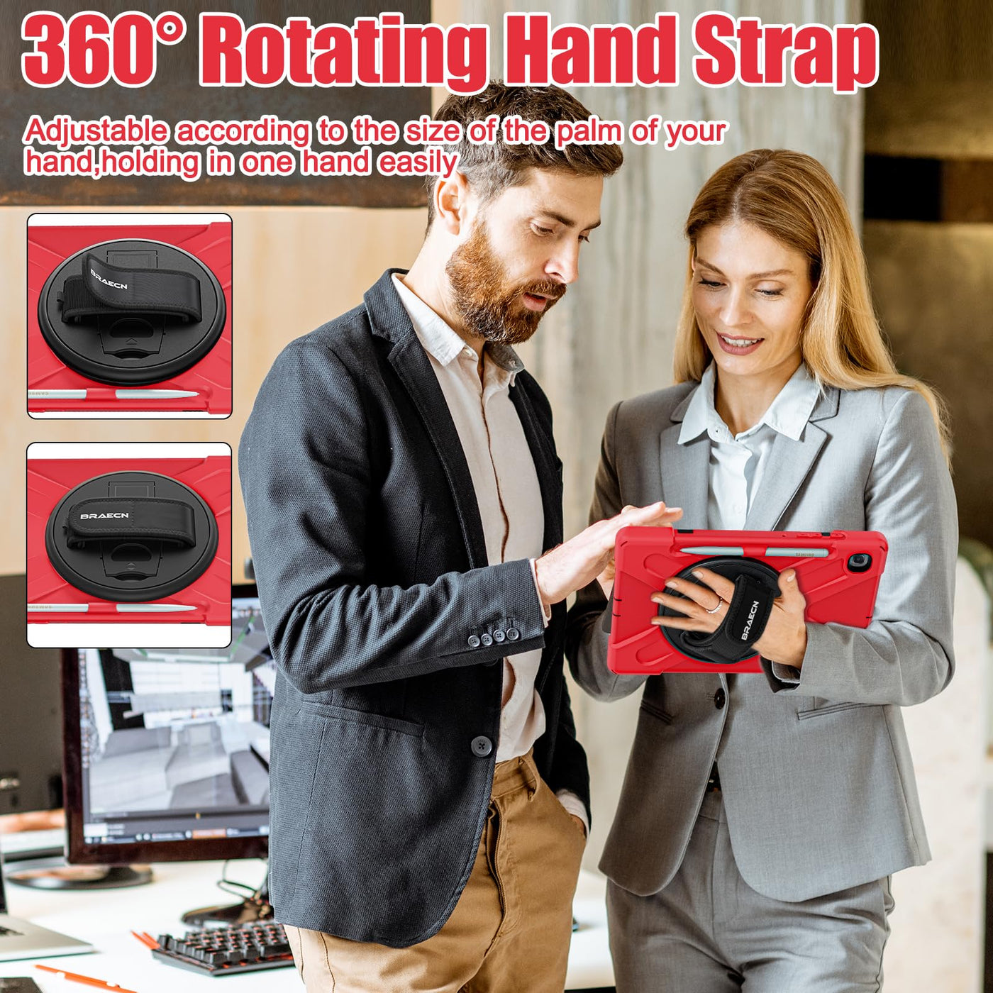 Braecnstock Samsung Galaxy Tab S6 Lite Case 10.4 Inch 2024/ 2022/ 2020 (Sm-P620/ P625/ P613/ P610/ P615/ P617/ P619) With 360 Rotating Hand Strap + Stand, Shoulder Strap, Pencil Holder Shockproof Rugged Heavy Duty Protection Suitable For Any People (Men Women Kids Girls Old Man ) Suitable For Any Scene (Trave, Working, Meeting, Warehouse, Car, In School Or Outdoors )