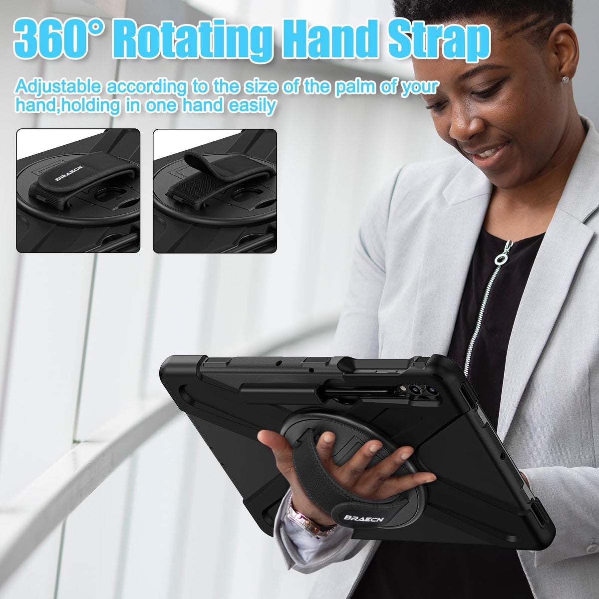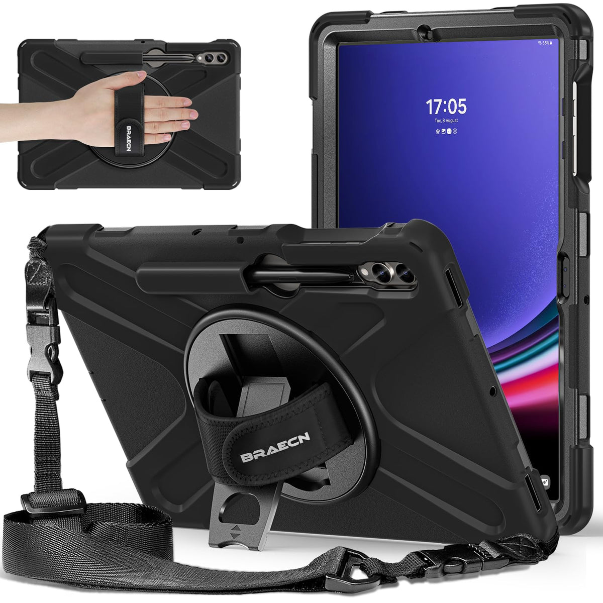 Braecnstock For Samsung Galaxy Tab S9 Fe+ Plus 2023/ S9+ Plus 2023/ S8+ Plus 2022/ S7 Fe 2021/ S7+ Plus 2020 5G Case 12.4 Inch With 360 Rotating Hand Strap + Stand, Shoulder Strap, Pencil Holder Shockproof Rugged Heavy Duty Protection Suitable For Any People (Men Women Kids Girls Old Man ) Suitable For Any Scene (Trave, Working, Meeting, Warehouse, Car, In School Or Outdoors )