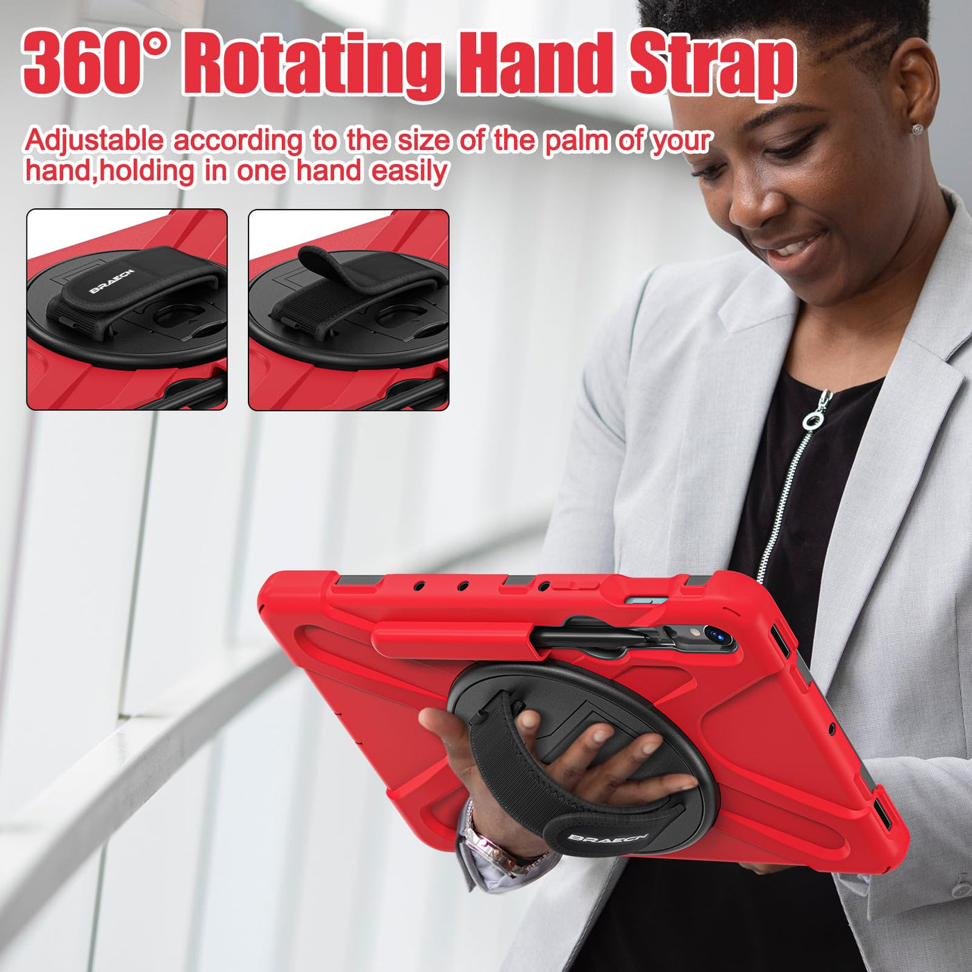 Braecnstock For Samsung Galaxy Tab S9 Fe/ S9 / S8/ S7 5G Case 10.9 Inch/11 Inch 2023/2022/2020 With 360 Rotating Hand Strap + Stand, Shoulder Strap, Pencil Holder Shockproof Rugged Heavy Duty Protection Suitable For Any People (Men Women Kids Girls Old Man ) Suitable For Any Scene (Trave, Working, Meeting, Warehouse, Car, In School Or Outdoors )