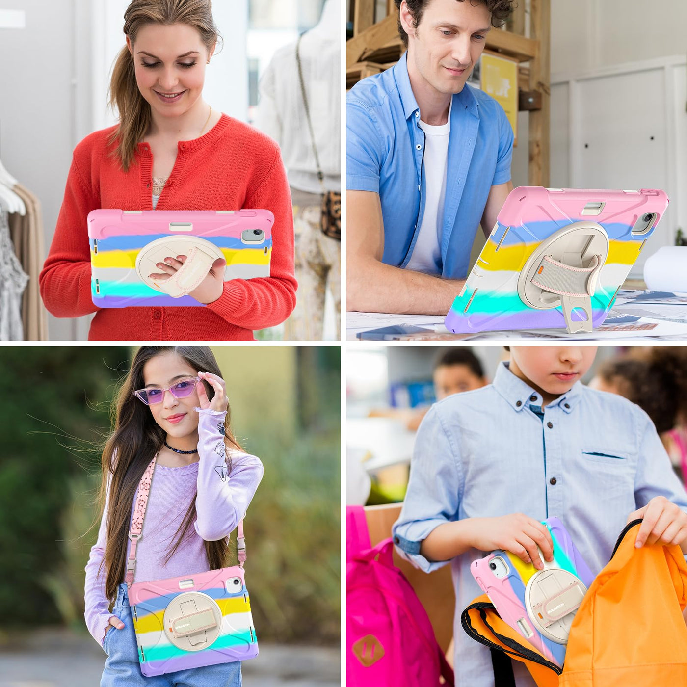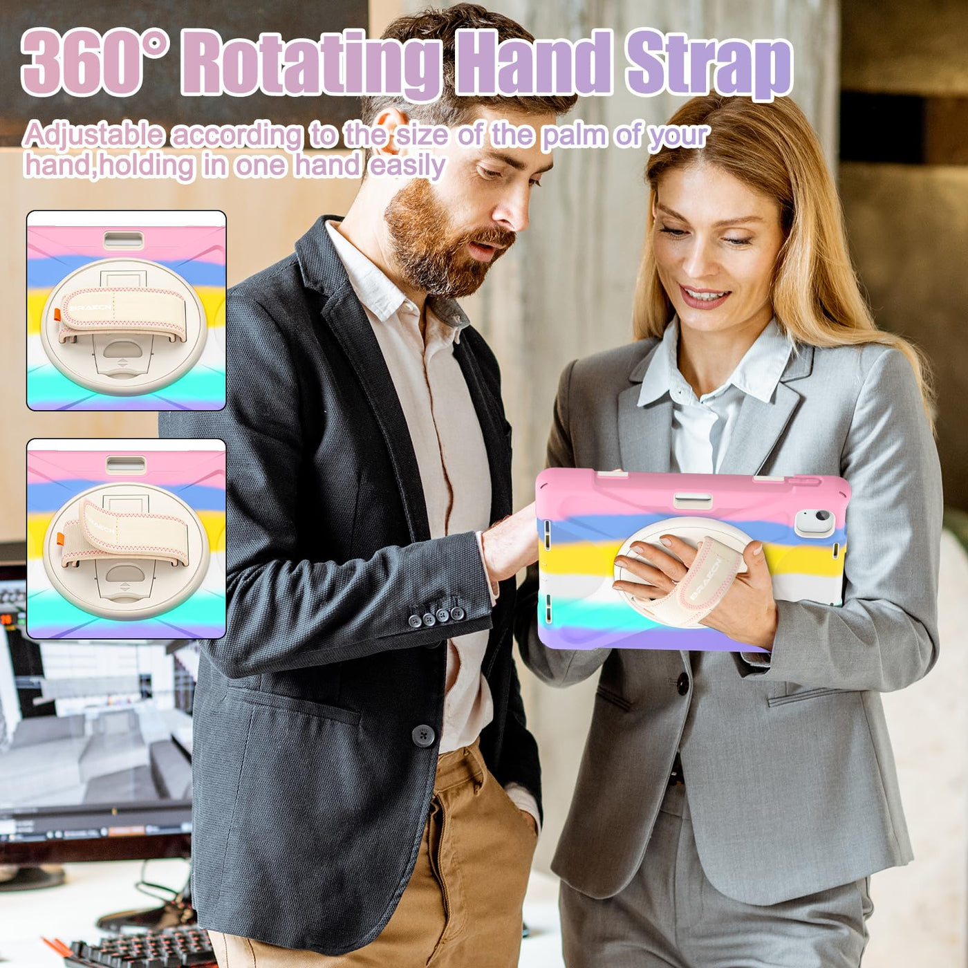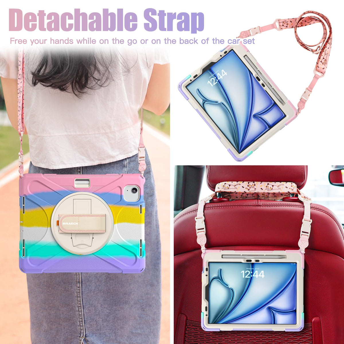 Braecnstock Case For Apple Ipad Air 11 Inch 2024 6Th Gen Ipad Pro 11 Inch 4Th/ 3Rd/ 2Nd/ 1St Gen 2022/ 2021/ 2020/ 2018 Ipad Air 5Th/4Th Gen 10.9'' 2022/ 2020 With 360 Rotating Hand Strap + Stand, Shoulder Strap, Pencil Holder Shockproof Rugged Heavy Duty Protection Suitable For Any People (Men Women Kids Girls Old Man ) Suitable For Any Scene (Trave, Working, Meeting, Warehouse, Car, In School Or Outdoors )