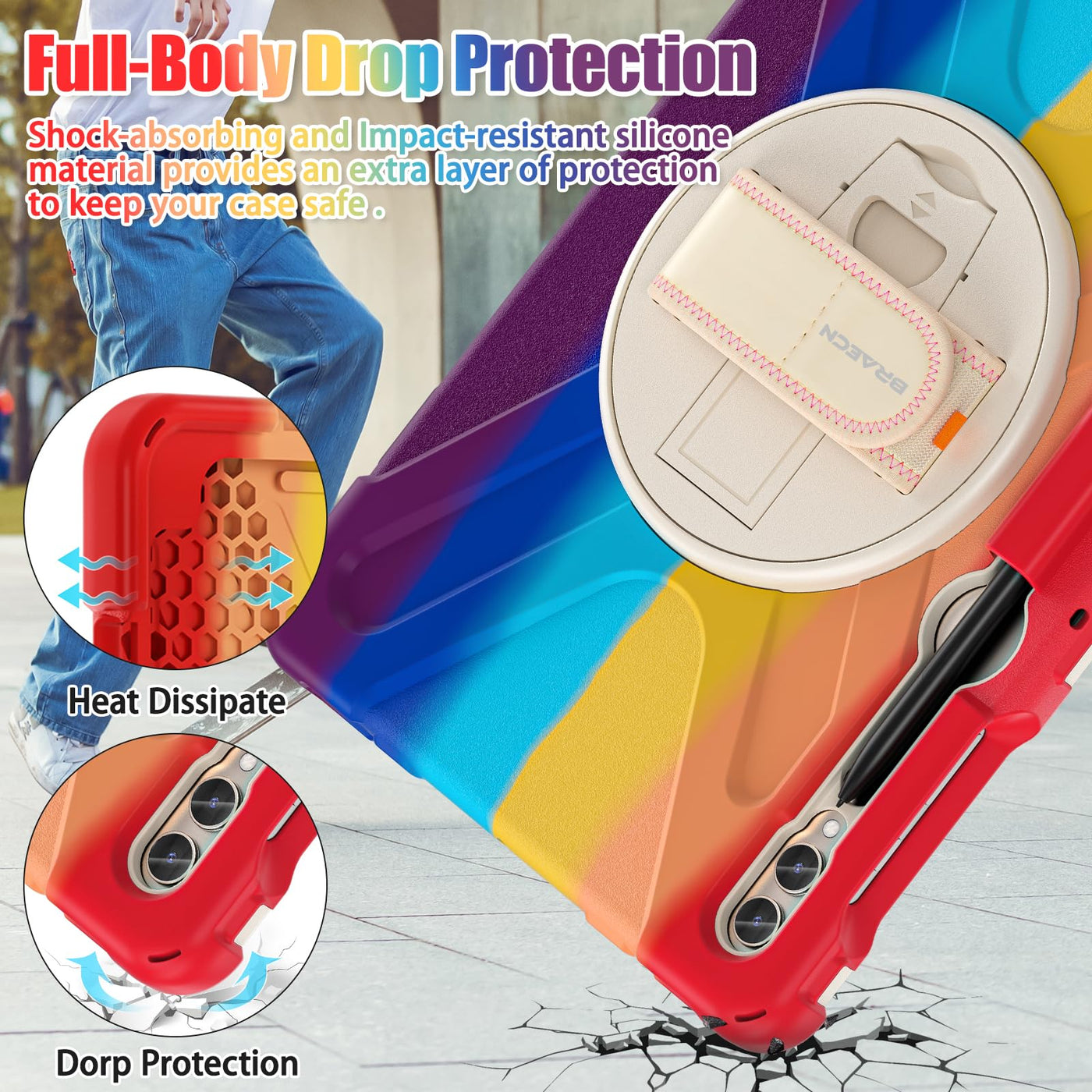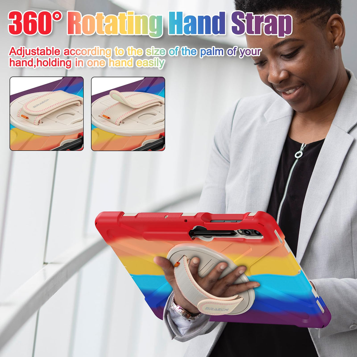 Braecnstock For Samsung Galaxy Tab S9 Fe+ Plus 2023/ S9+ Plus 2023/ S8+ Plus 2022/ S7 Fe 2021/ S7+ Plus 2020 5G Case 12.4 Inch With 360 Rotating Hand Strap + Stand, Shoulder Strap, Pencil Holder Shockproof Rugged Heavy Duty Protection Suitable For Any People (Men Women Kids Girls Old Man ) Suitable For Any Scene (Trave, Working, Meeting, Warehouse, Car, In School Or Outdoors )