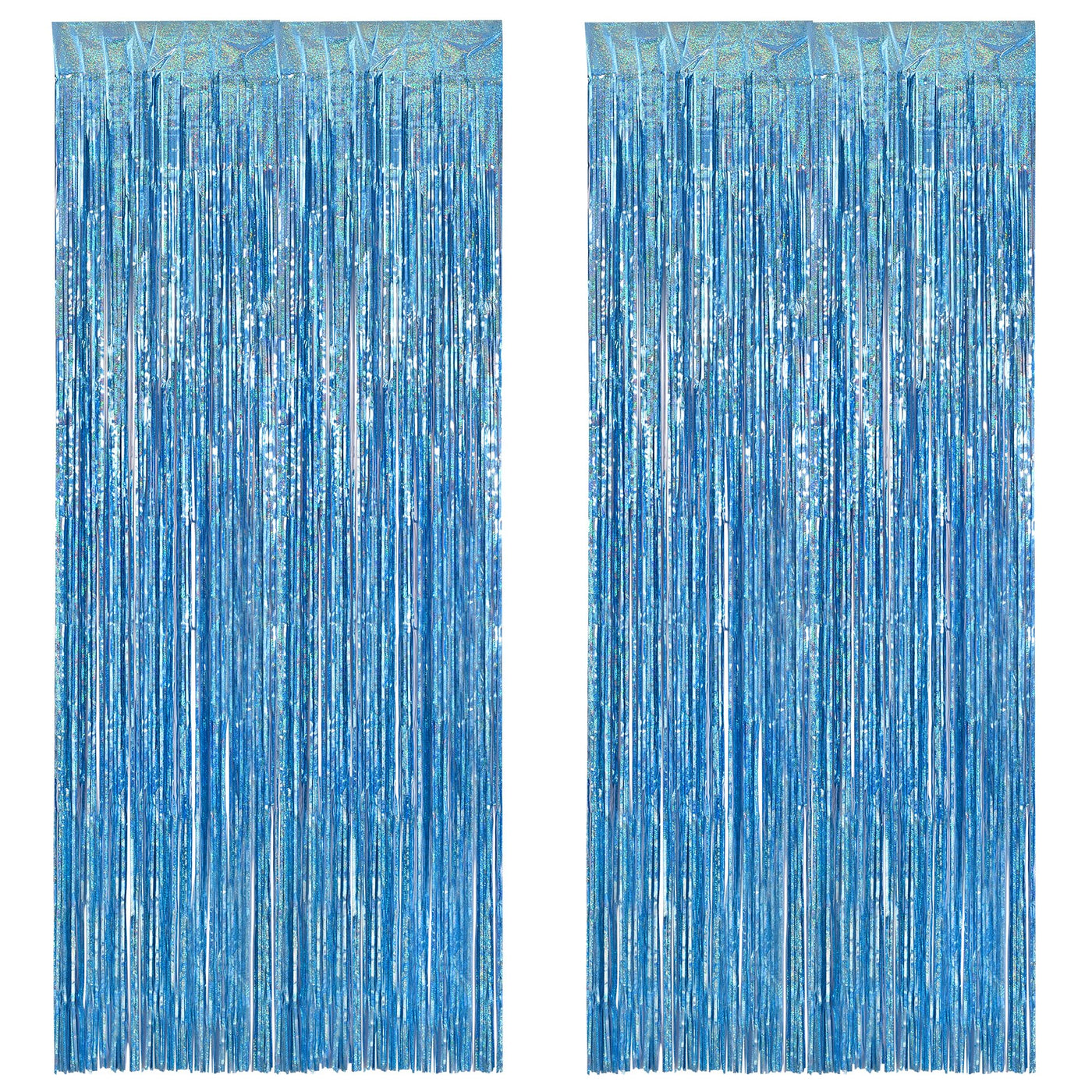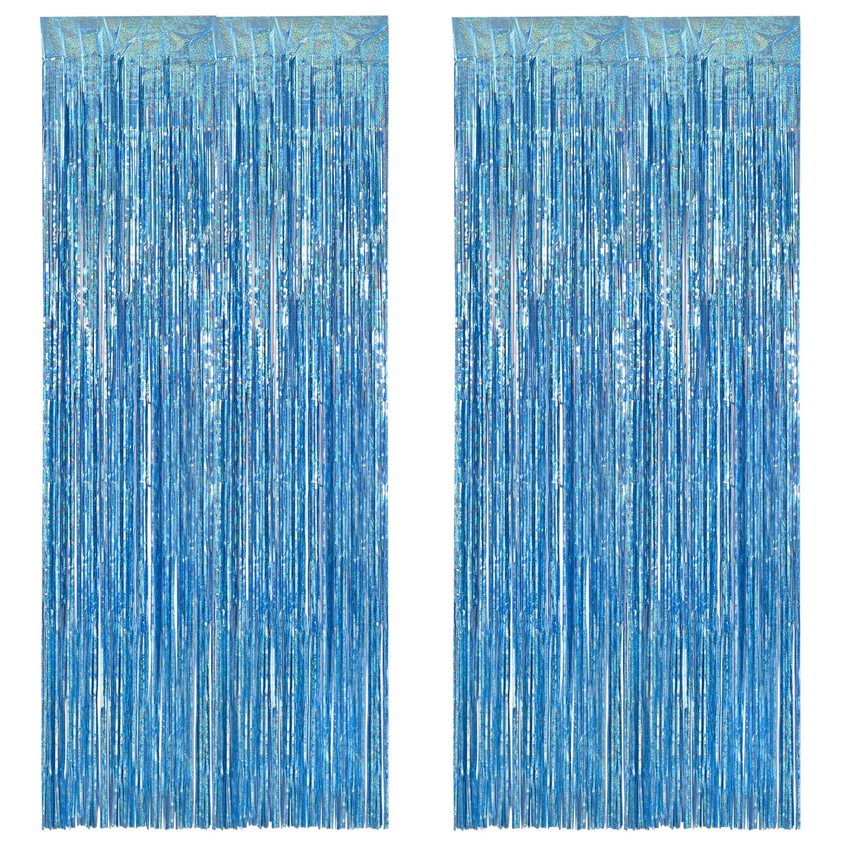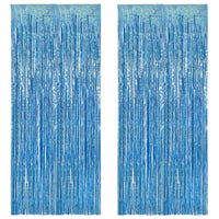 Braveshine Light Blue Tinsel Foil Fringe Curtains 2Pcs 3.2X8.2 Ft Metallic Holiday Photo Booth Backdrop For Birthdays Mermaid