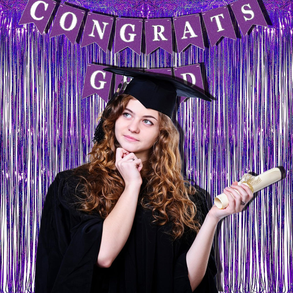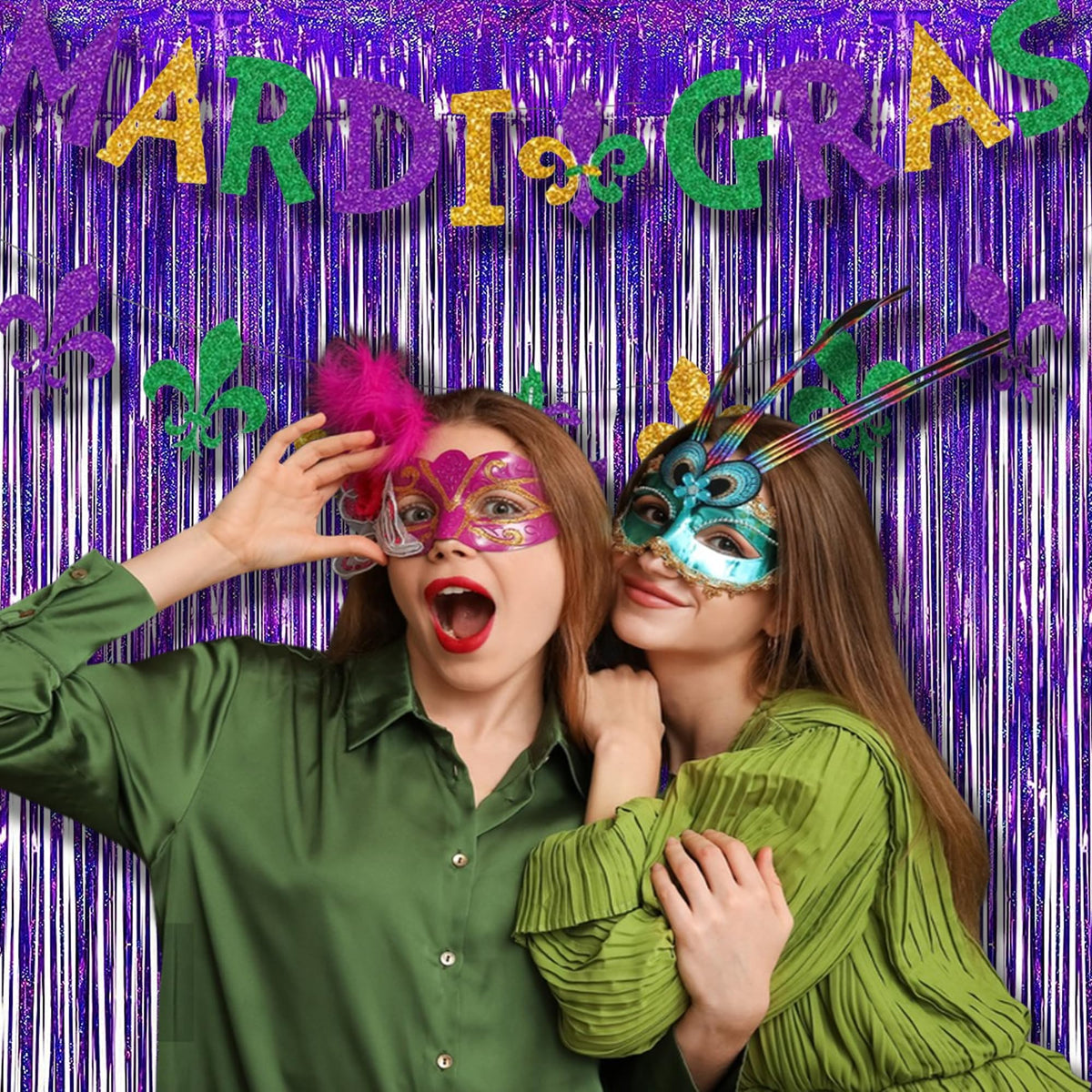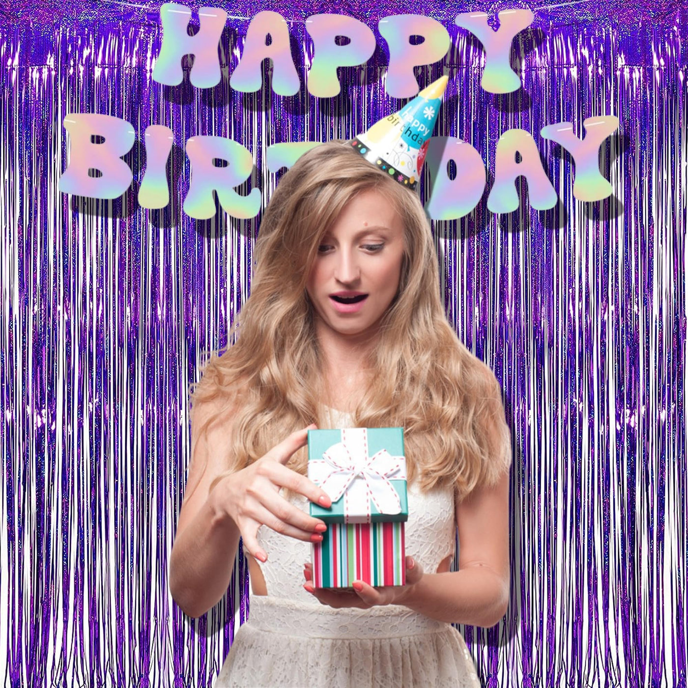 Metallic Tinsel Foil Fringe Curtains Photo Booth Props For Party Decorations Package Includes: 2 Pack Foil Fringe Curtain. Size:3.2 Ft X 8.2 Ft Each Material Of Curtains: Aluminium Foil Sparkling Mylar,Can Be Reused Suitable For Hanging On A Door, Window Or Coverage A Wall Fully. Perfect As A Party Backdrop For Unicorn Birthday, Wedding, Mardi Gras, Five Nights At Freddy Birthday, Bridal Shower, Baby Showers, Graduations, Christmas, New Year Eve And More Such A Simple Hanging Draperies Are Perfect For Most Theme Parties Or Indoor Or Outdoor Decorations. 1.Use It At The Back/Behind Of The Dessert Table 2.It Is A Nice Background For Birthday Party 3.Great Office Decoration. 4.Beautiful Holographic Effect During Photoshoot In Wedding Anniversary. 5.Cover The Fence For The Party 6.Adorable Background Covers Door Perfectly For A Great Birthday Girl Surprise! It Is Great To Cover A Door For A Birthday Surprise Greeting. 7.Fun To Used As Party Photo Shoot Backdrop. 8.Used In Backdrop For Ceremony Background. 9.So Sparkle Metallic Tinsel Curtain For The Bachelorette Party 10.Great To Create Celebratory Halloween Atmosphere 11.Using The Shiny And Sparkle Tinsel Curtain As A Scare Crow To Keep Birds And Squirrels From Your Garden Or Backyard. 12.These Shimmer Curtains Are Pretty And Were Easy To Use. Good For Your Party Decoration 13. Enhanced Shimmer Background Forchristmas Garlands 14.Perfect For Balloon Backdrop In The Garden Or Backyard. 15.Perfect For Decorating A Bridal Shower Or Bachelorette Party. 16.Use For Frozen Themed Birthday Party As A Door Decoration.