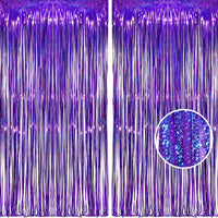 Braveshine Purple Tinsel Foil Fringe Curtains 2Pcs 3.2X8.2Ft Metallic Holidays Photo Backdrop For Birthdays Valentines Bridal