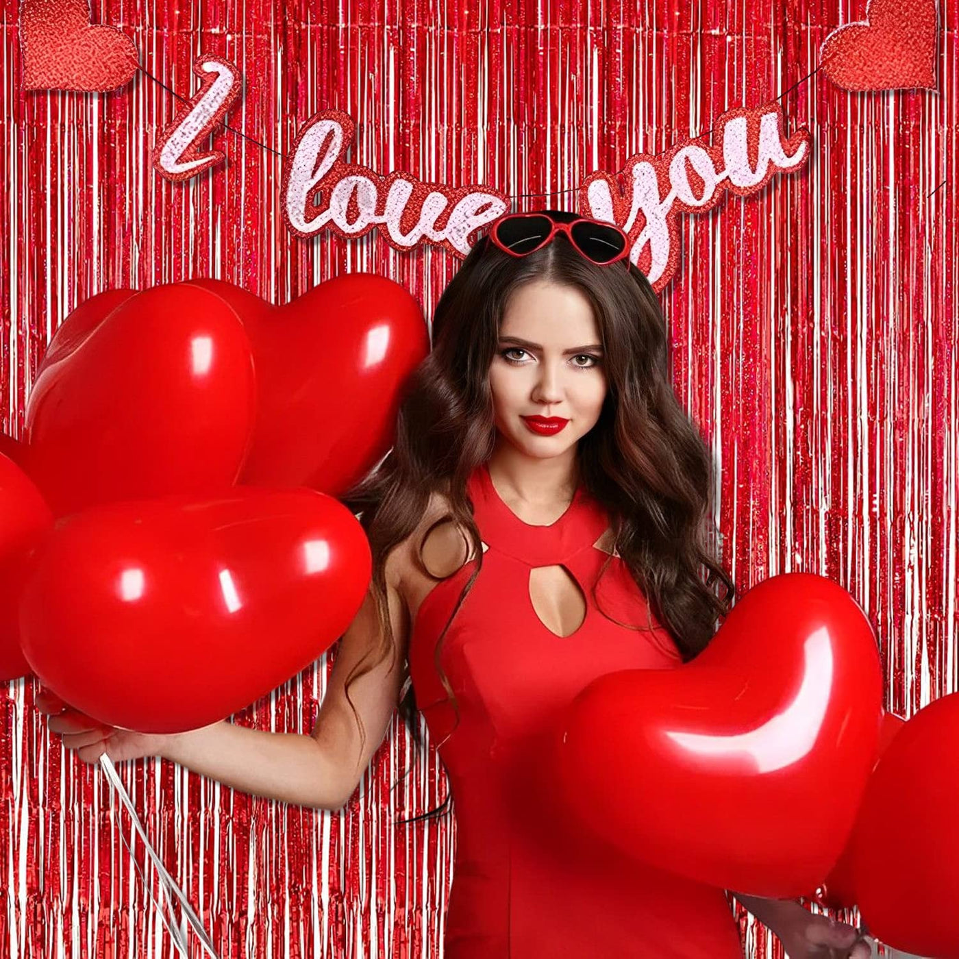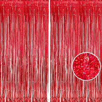 Braveshine Red Tinsel Foil Fringe Curtains 2Pcs 3.2X8.2Ft Holidays Photo Booth Backdrop For Girls' Birthdays Valentine Christm