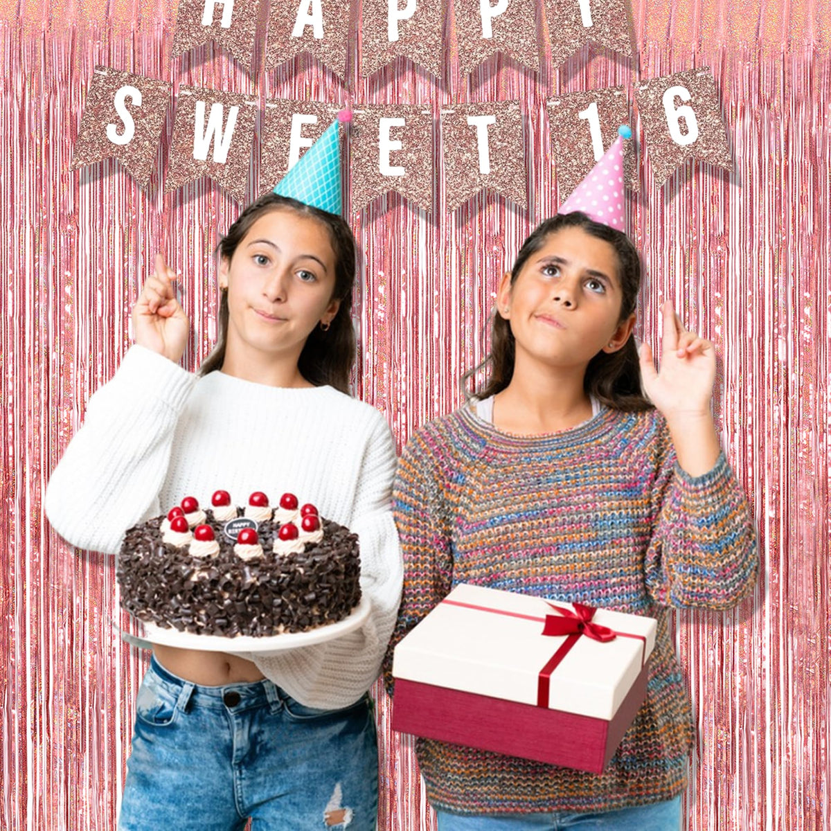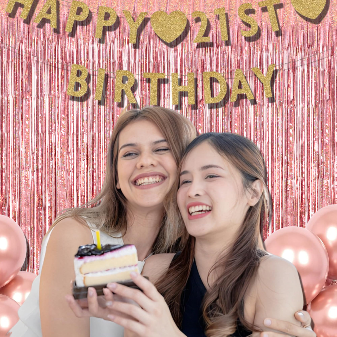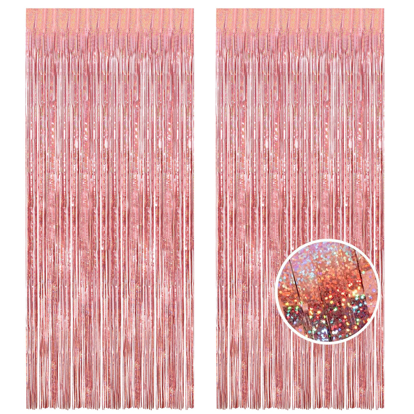 Braveshine Rose Gold Metallic Tinsel Backdrop 2Pcs 3.2X8.2Ft Metallic Tinsel Foil Fringe Curtains Photo Booth Streamers For 21