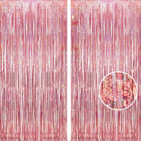 Braveshine Rose Gold Tinsel Foil Fringe Curtains 2Pcs 3.2X8.2Ft Metallic Holiday Photo Booth Backdrop Party Supplies For Birth