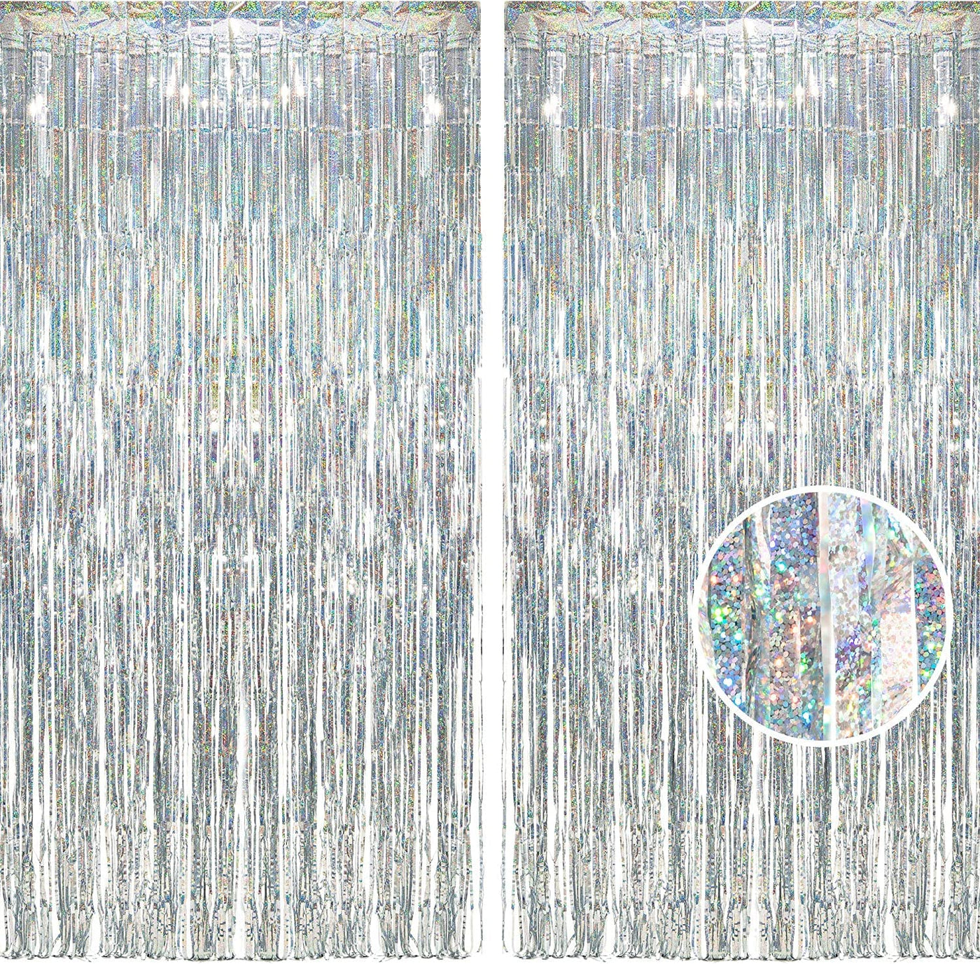 Shiny Streamer Backdrop Curtain Photo Booth Props For Party Decorations Package Includes: 2 Pack Sliver Foil Fringe Curtains For Party. Size: 3.2 X 8.2 Ft. Material Of Curtains: Aluminium Foil Sparkling Mylar. Suitable For Hanging On A Window Or Covering A Wall Fully. Perfect As A Party Backdrop For Girls' And Womens Birthdays Party, Christmas Party, New Years Eve Party, Anniversary Party, Dance Party And More. Such Simple Shimmer Metallic Hanging Draperies Can Be Used At Most Theme Parties, Indoor Or Outdoor Decorations. 1. Decorating The Back/Behind Of The Dessert Table With The Fringe Curtains. 2. It Is A Nice Backdrop For Birthdays Party. 3. Great For Office Decoration. 4. Beautiful Holographic Effect During Photoshoot In Anniversary. 5. Cover The Fence For The Party. 6. The Adorable Wall Fringe Backdrop Is Perfect Party Decoration For Girls Birthdays. 7. Used As Funny Party Photo Shoot Backdrop. 8. Used For Ceremony And Festivals' Backdrop. 9. So Sparkly Metallic Tinsel Curtain For Bachelorette Party. 10. Great To Create And Enhance Celebratory Atmosphere. 11. Using The Shiny And Sparkly Curtain Backdrop As A Scare Crow To Keep Birds And Squirrels From Your Garden Or Backyard. 12. These Shimmer Wall Curtains Are Pretty And Easy To Use. Good For Your Party Decorations. 13. Enhanced Shimmer Backdrop For Celebration Garlands. 14. Tinsel Curtain Party Backdrop Perfectly Pairing With Balloons Backdrop In The Garden Or Backyard. 15. Perfect For Decorating A Bridal Shower Or Bachelorette Party. 16. Used For Various Themed Party As A Wall Streamers Decoration. 17. Sparkly Curtain For Your Lovely Party Decorations. 18. Used For Covering Your Graffiti Or Broken Walls. 19. Used As Bridal Shower Curtains.20. Pretty Gifts For Mother'S Day, Valentine'S Day.