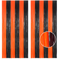 Braveshine Tinsel Photo Backdrop Curtains 2 Pack 3.2X8.2Ft Black Orange Foil Fringe Streamer Curtain For Birthdays, Halloweens