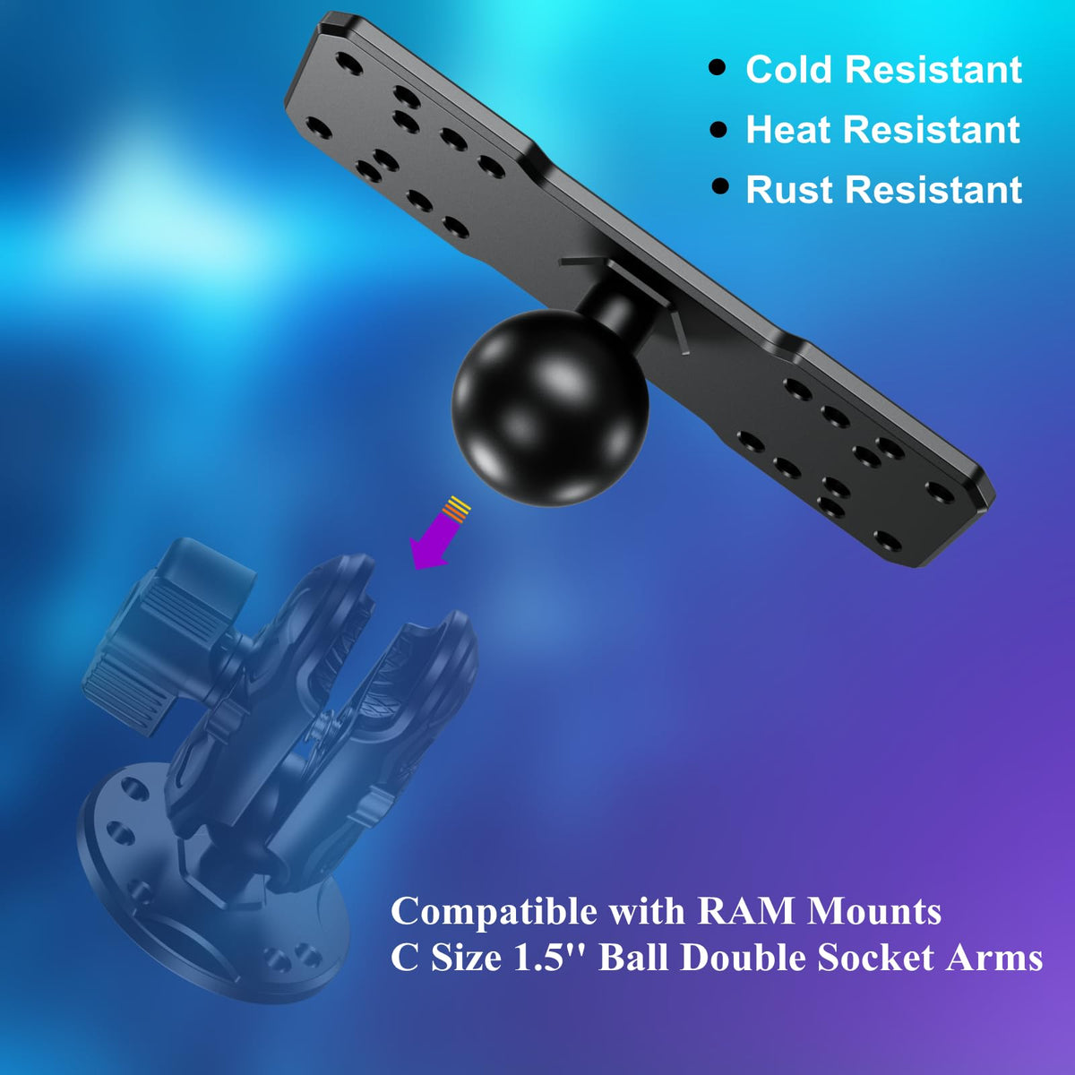 Brcovan 1.5'' Ball Fish Finder Mount Plate, Aluminum Alloy Universal Marine Electronic Plate For Garmin, Humminbird, Lowrance, R