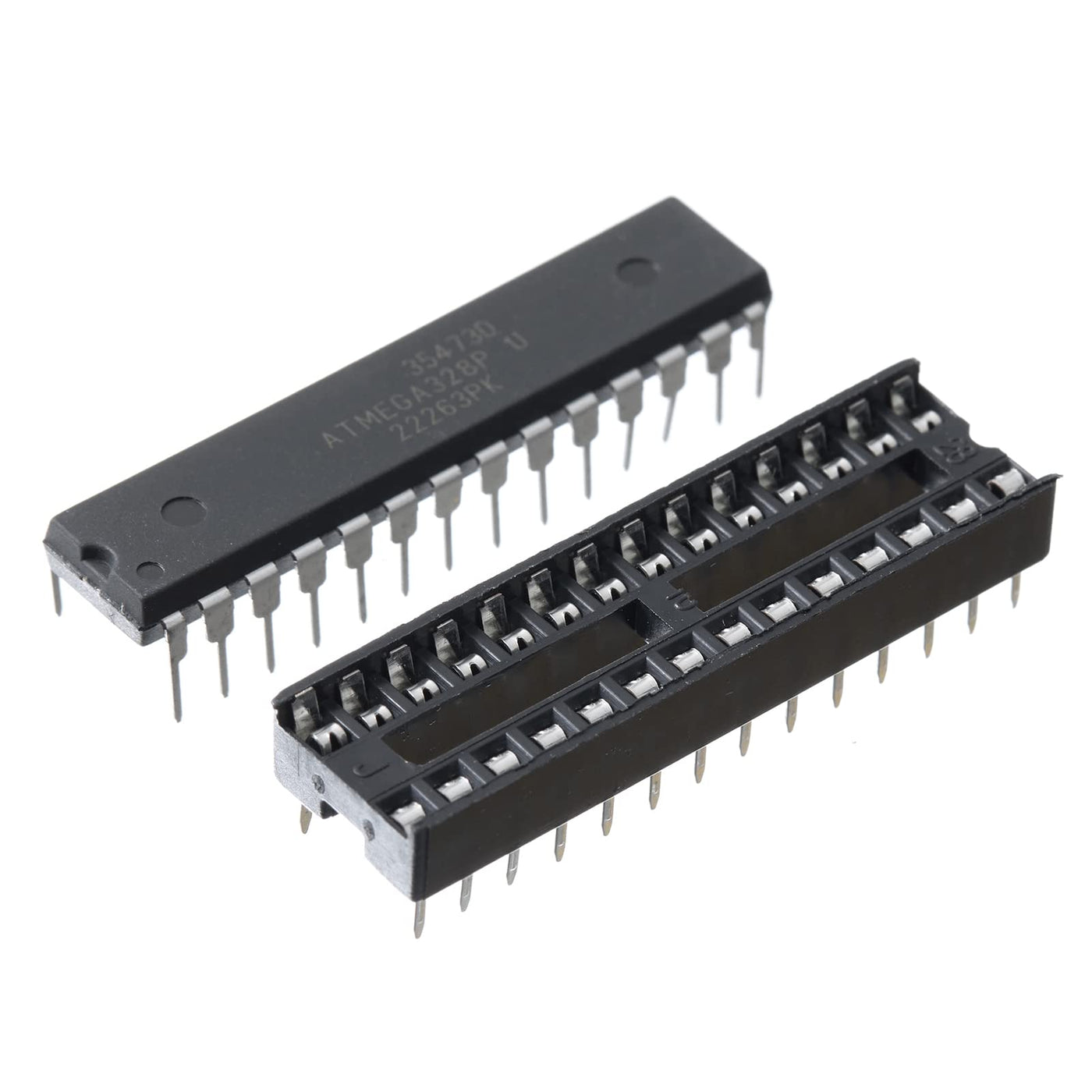 Bridgold 1Pcs Atmega328P Pu(Includes 28P Ic Base) 8 Bit Microcontroller,4/8/16/32K Bytes In System Programmable Flash,Dip 28.