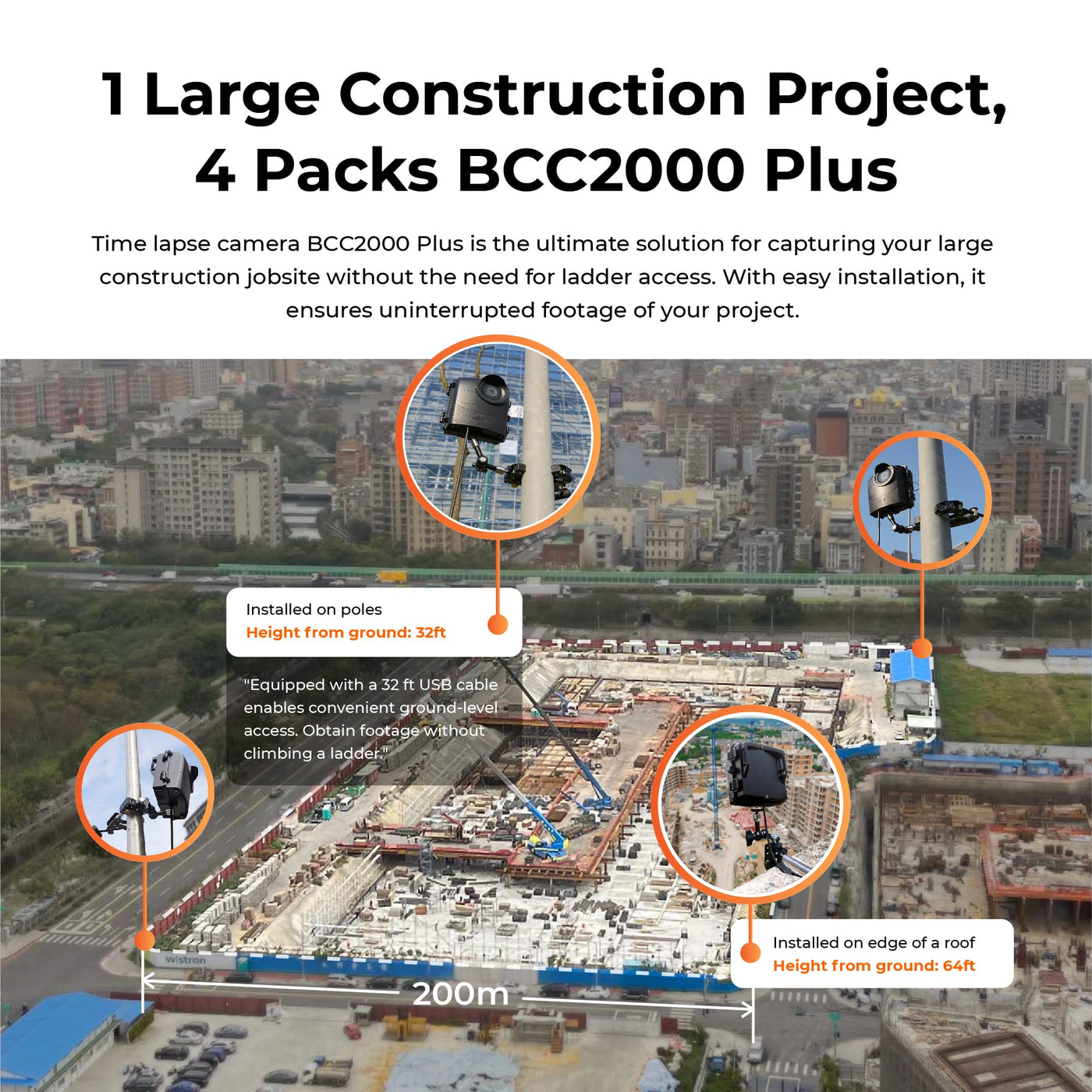 Brinno Bcc2000 Plus 4 Pack Construction Camera Bundle | Includes: Full Hd Tlc2000 Time Lapse Camera, 32 Ft Extender Kit, Clamp Mount & Waterproof Case | Cameras For Jobsites | 1 Year Battery | 4 Pack