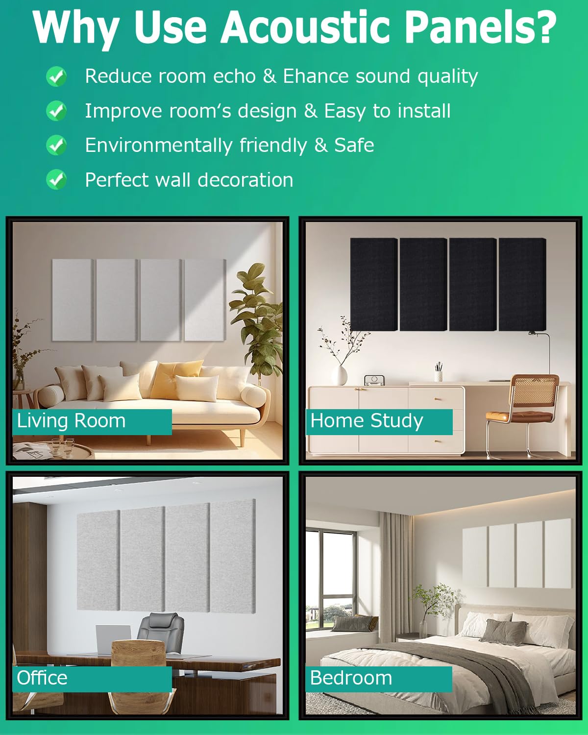 Bubos 4 Pcs Acoustic Panels,24''X12'' Fabric Soundproof Wall Panels,Self-Adhesive Sound Absorbing Panels For Studios, Office, Home Theater